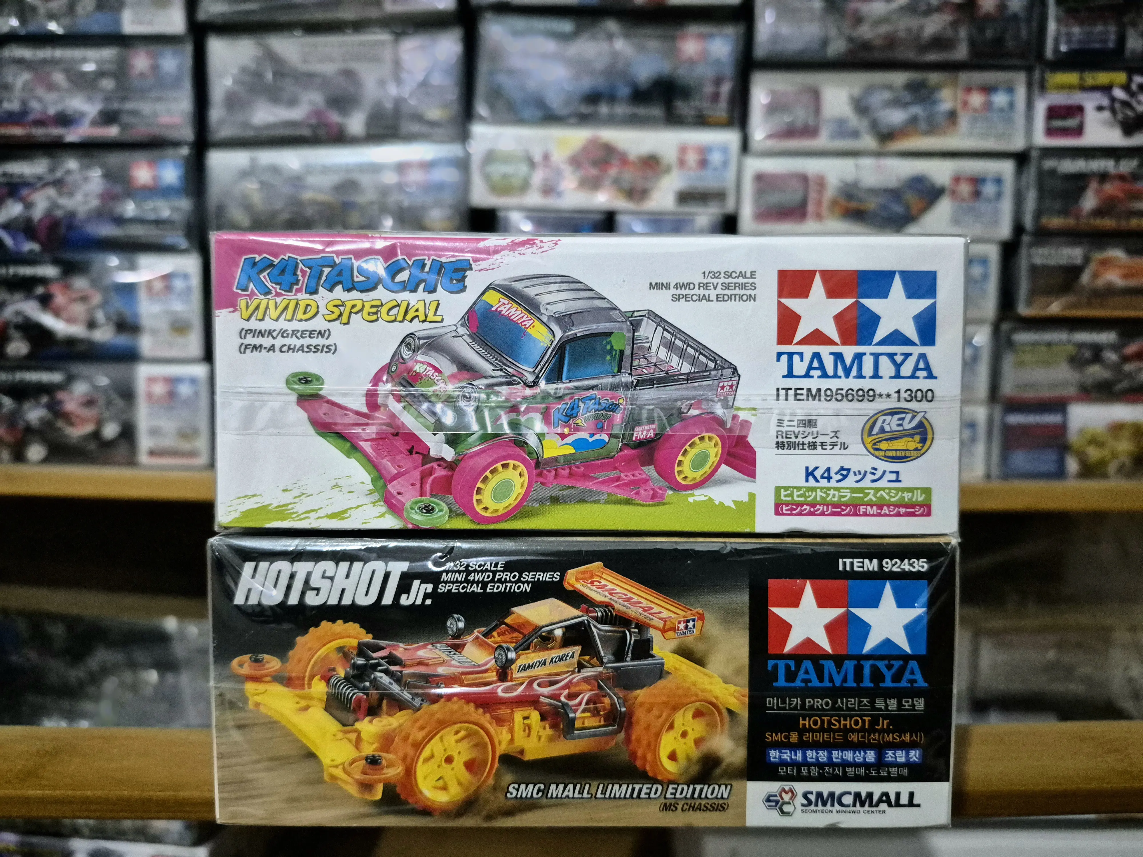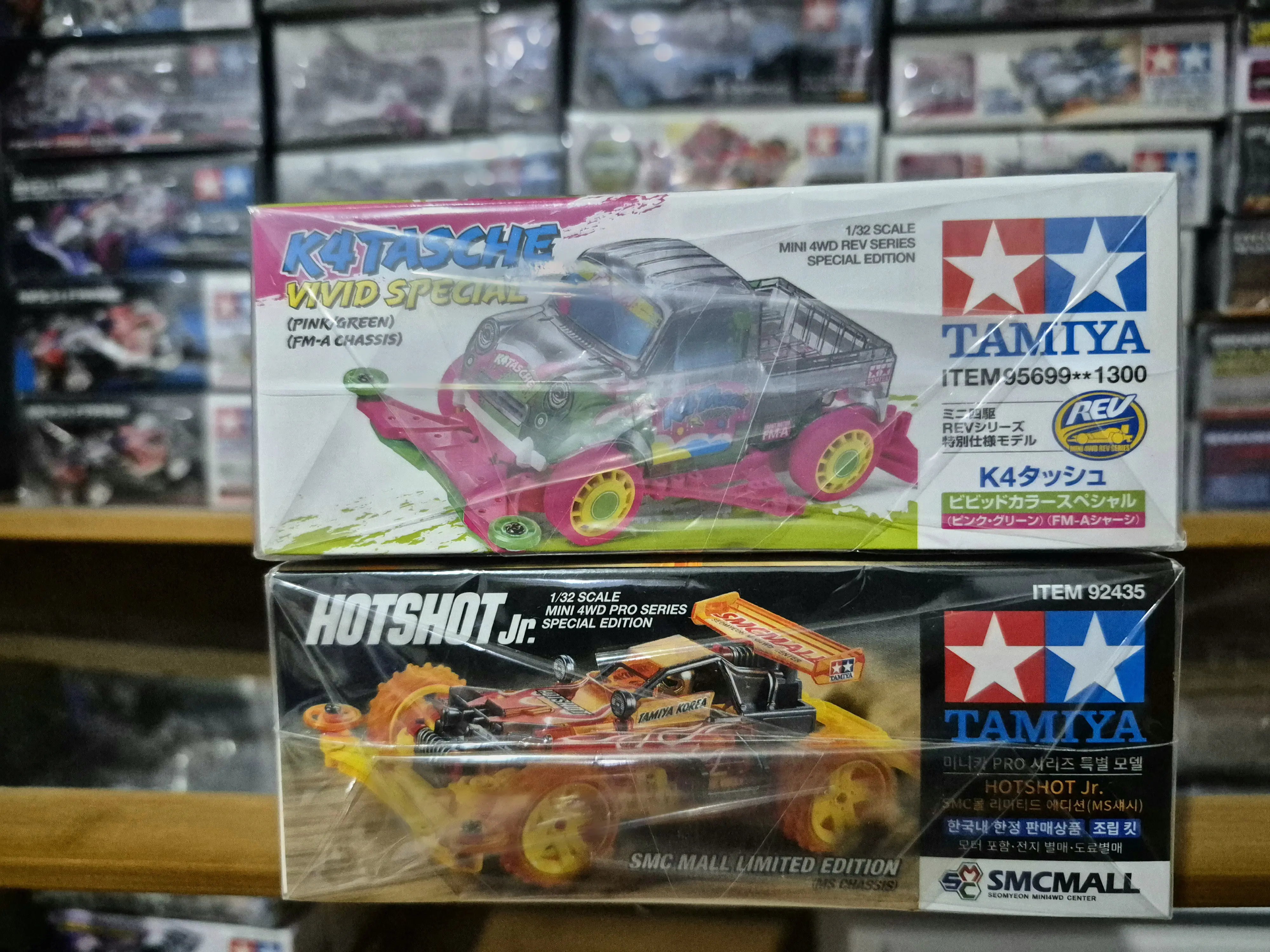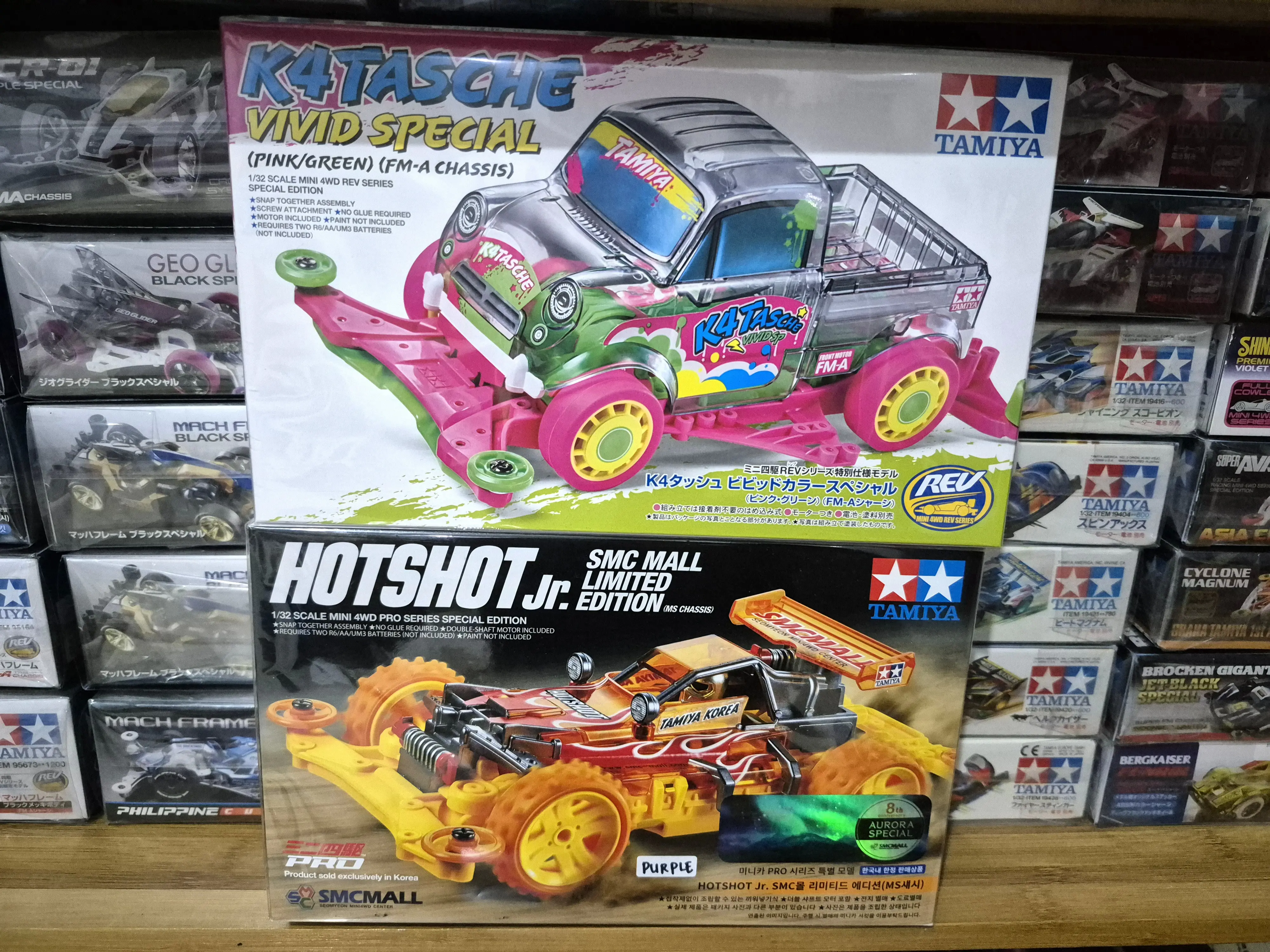 5. TAMIYA MINI 4WD - [BUNDLING] K4TASCHE VIVID SPECIAL (PINK/GREEN) AND HOTSHOT JR. 8TH ANNIVERSARY SMCMALL AURORA SPECIAL (PURPLE)
