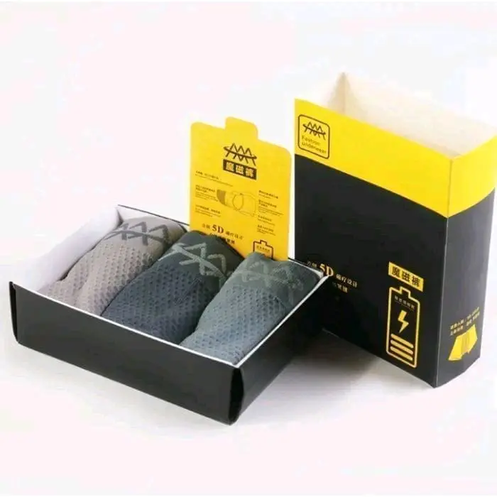 Boxer Celana Dalam 5D Magnetic Premium Boxer Terapy Kesehatan Vitalitas Pria  Bahan Lembut Katun Nylon Spandex tanpa box All Size Fit To 3XL Hitam Abu Muda Abu Tua Nyaman