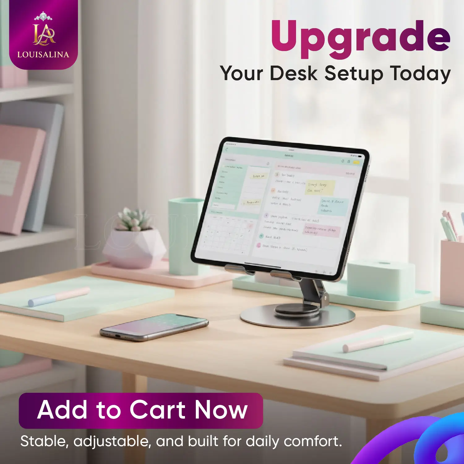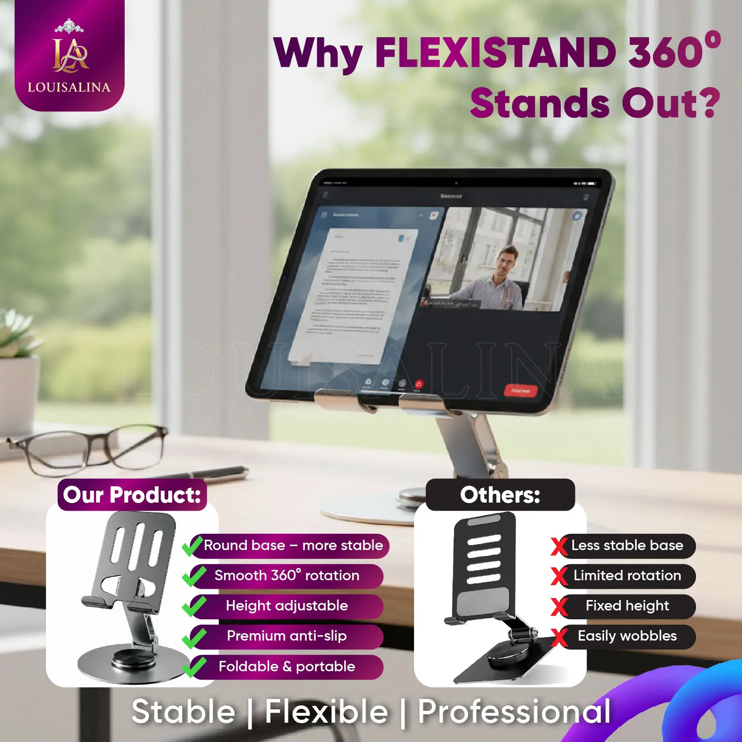 Dengan fitur putar 360°, kamu bisa menyesuaikan posisi ponsel sesuai kebutuhan — baik untuk nonton film, video call, maupun bekerja. Desainnya bisa dilipat, ringan, dan mudah dibawa ke mana saja.