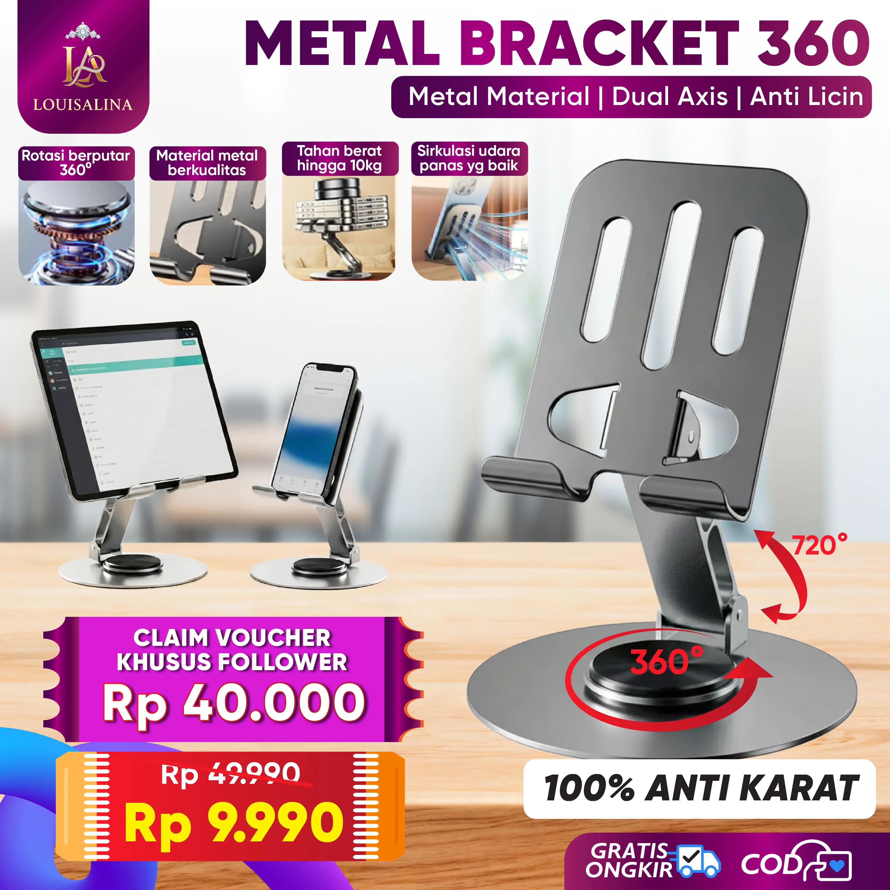 LOUISALINA Stand Dudukan HP Portable dari Metal Kokoh Bisa Lipat dan Putar 360° Kuat BSH10D