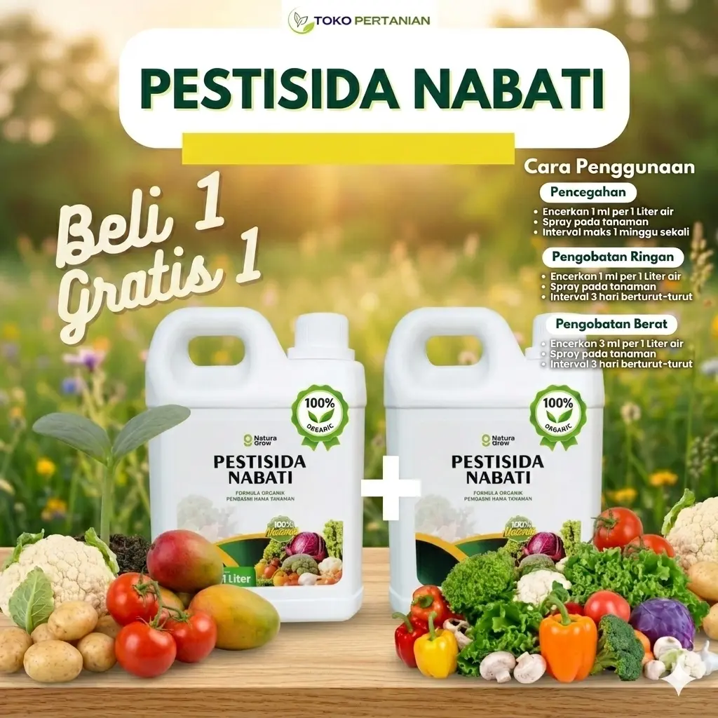 Pestisida Nabati Organik Benih Seribuan hadir sebagai solusi alami dan efektif untuk mengendalikan berbagai jenis hama, jamur, dan penyakit tanaman.