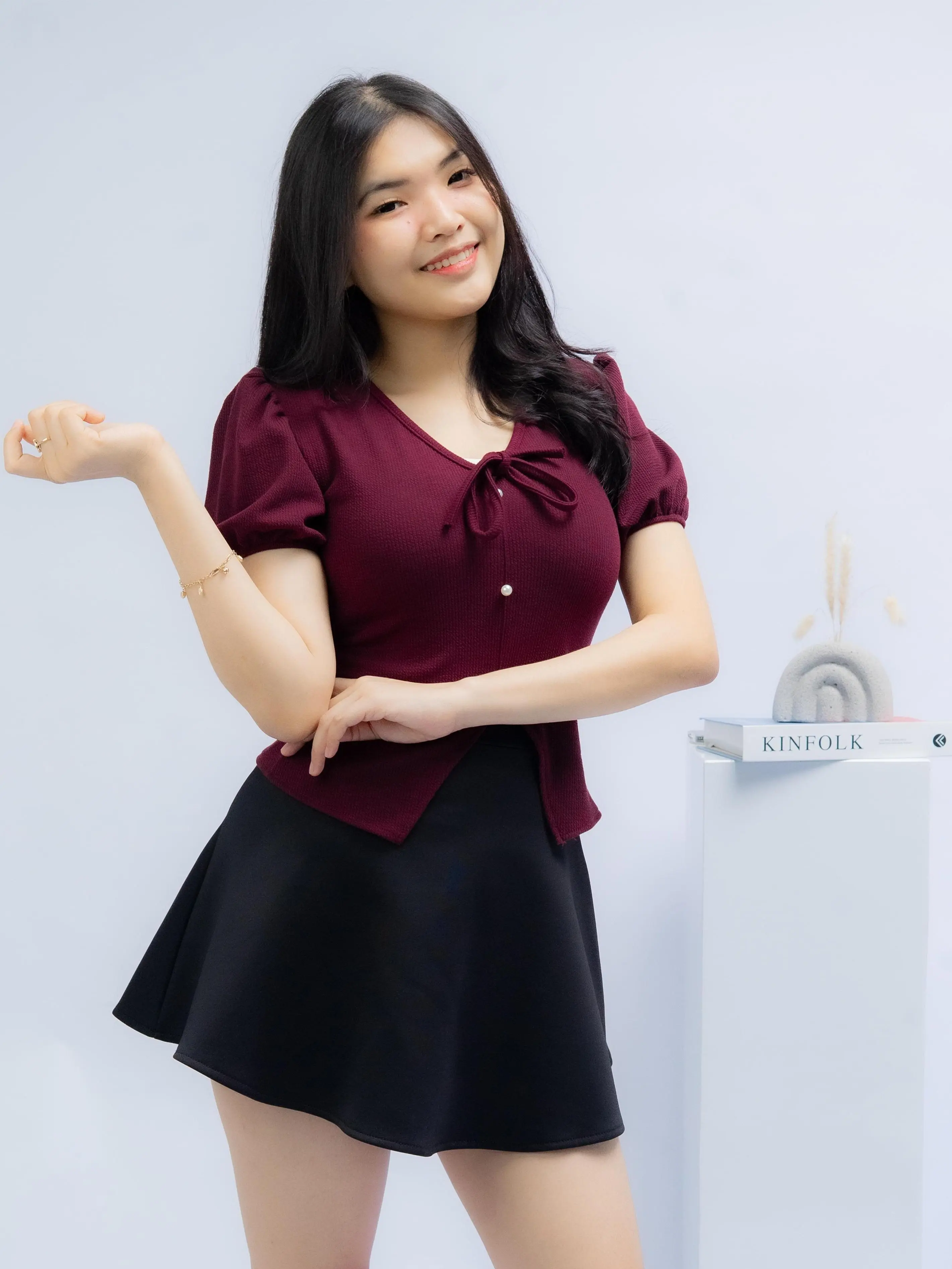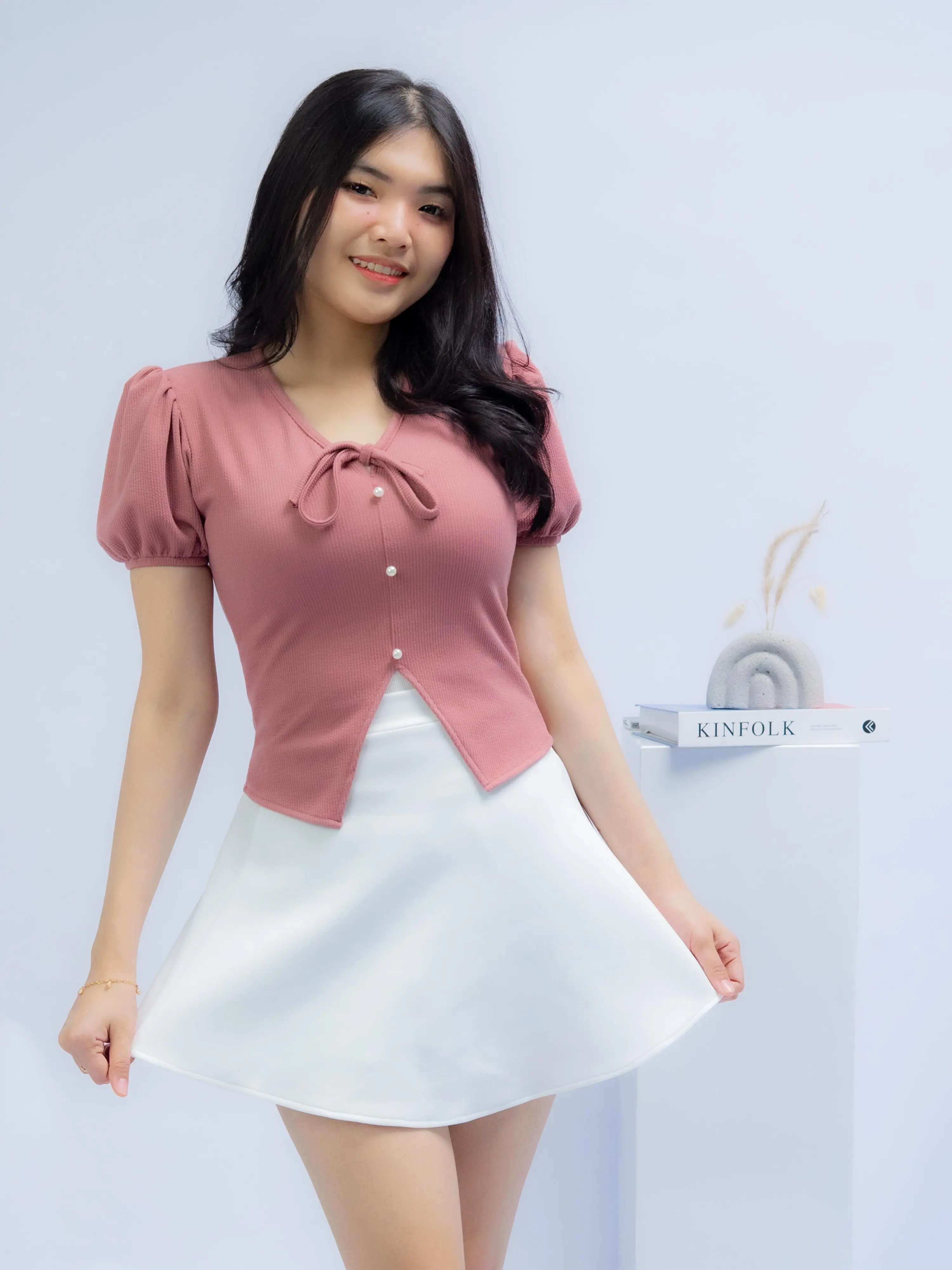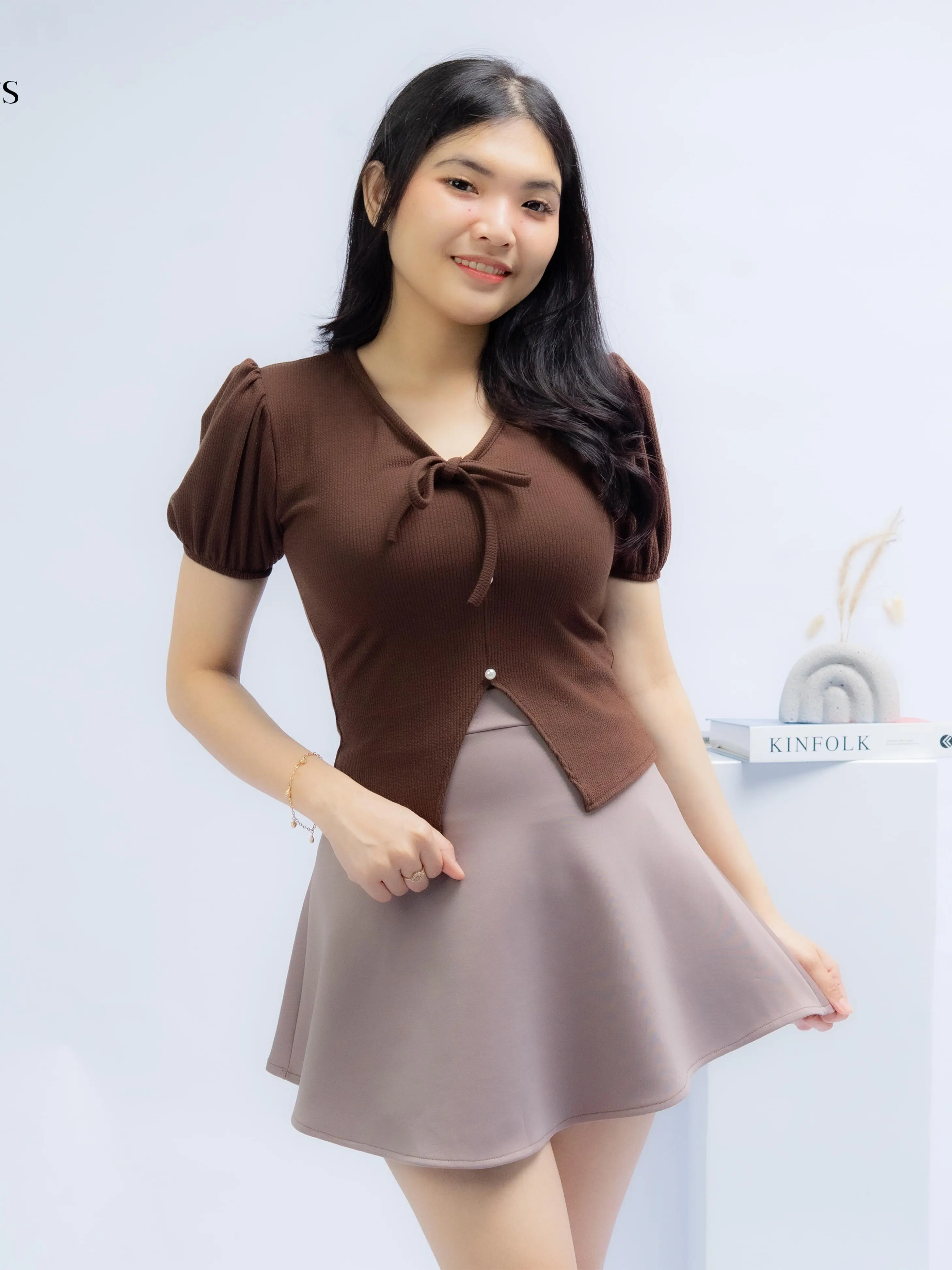• aksen kancing dan tali (tidak aktif) membuat look lebih feminime