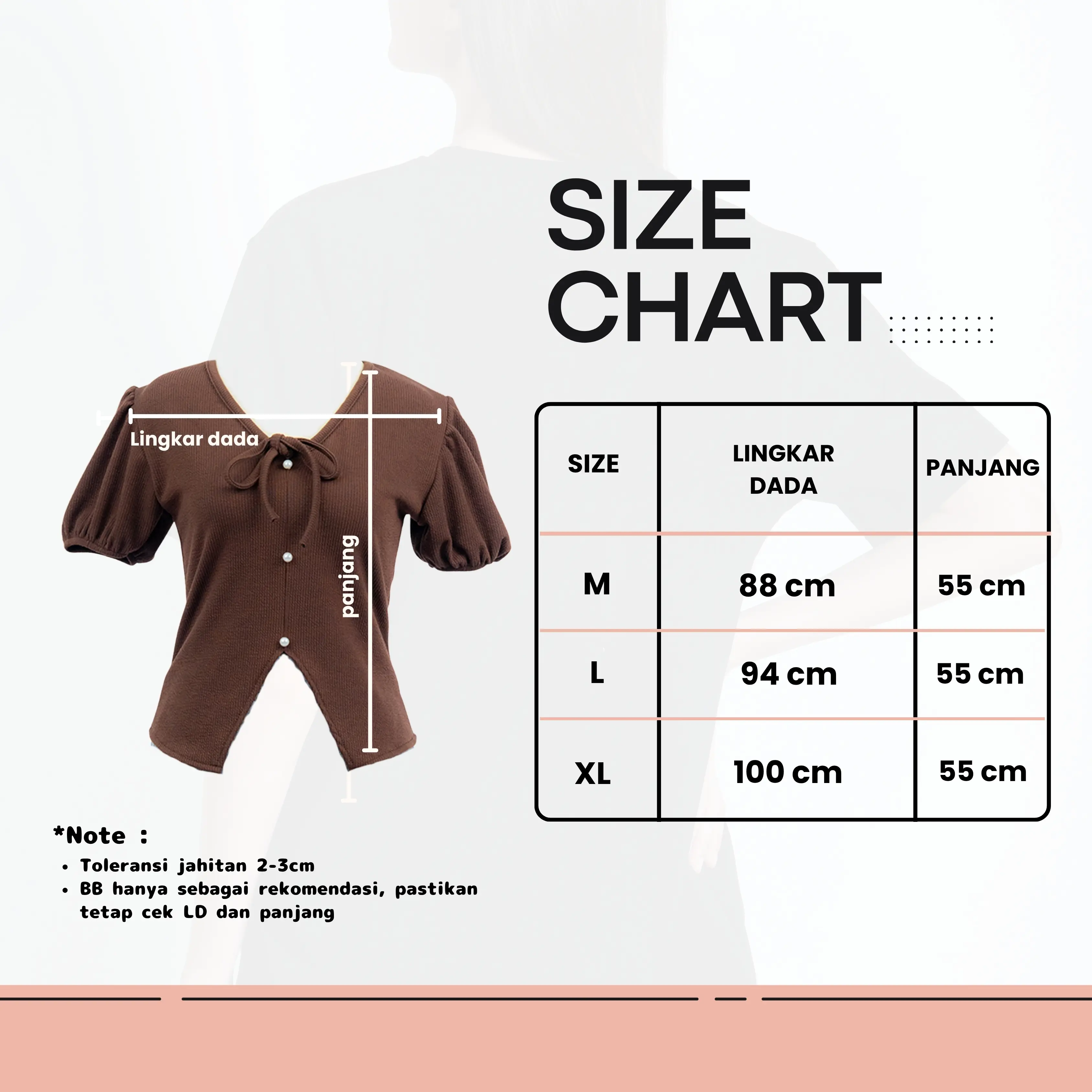 • estimasi bahan bisa melar sampai -+5cm