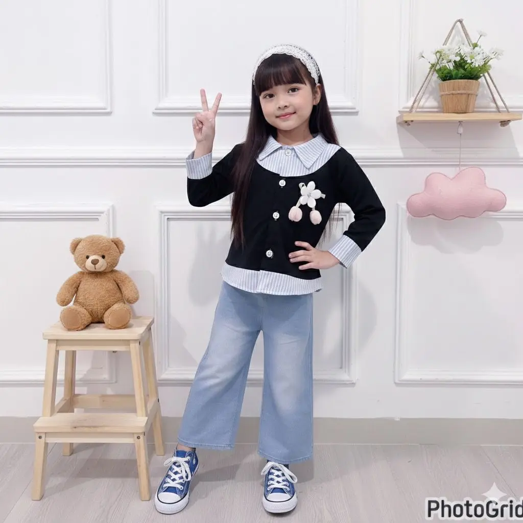 Setelan Jeans Wispie Import Anak Perempuan Usia 2-10 Tahun Viral Fashion Anak Terbaru Terlaris COD
