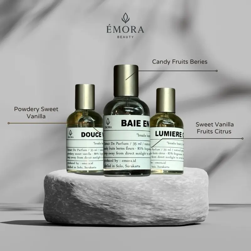 ·Aroma Menawan: Emora parfume 35ml menawarkan aroma douce vanille, lumiere citrus, dan baie en fleurs.