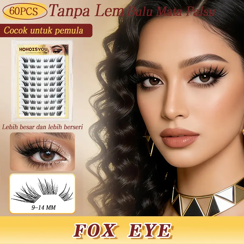 HOHOISYOU 60PCS Glue-Free Fox Eye False Lashes – 9-14mm untuk tampilan alami dan menawan! Cocok untuk pemula dan profesional.