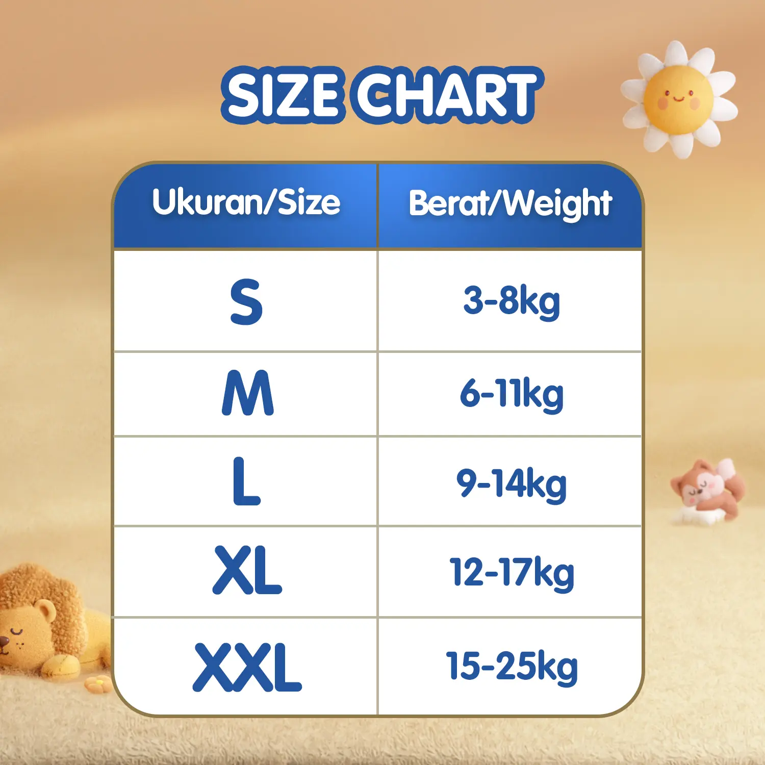 Ukuran : NB/S/M/L/XL/XXL