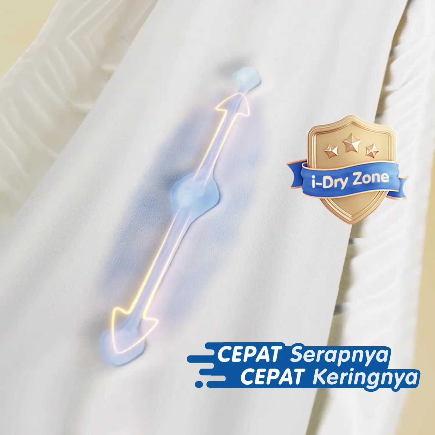 Dry Care didesain dengan 3 lapisan (atas, penyerap, dan bawah), mampu mengurangi hawa panas dan kulit si Kecil tetap segar & tidak lembab.
