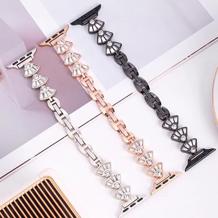 5. Strap iWatch Metal Fan-Shape Fish Tail Style Stainless Steel Smartwatch untuk Apple Watch Series 1st Gen 1 2 3 4 5 6 7 8 9 10 11 SE SE2 SE3 Ultra Ultra2 Ultra3 38mm/40mm/41mm/42mm/44mm/45mm/46mm/49mm