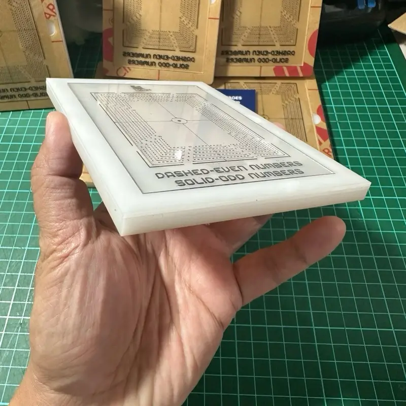 Semua garis dan ukuran dibuat menggunakan laser cutting, sehingga hasil pengukuran sangat presisi.