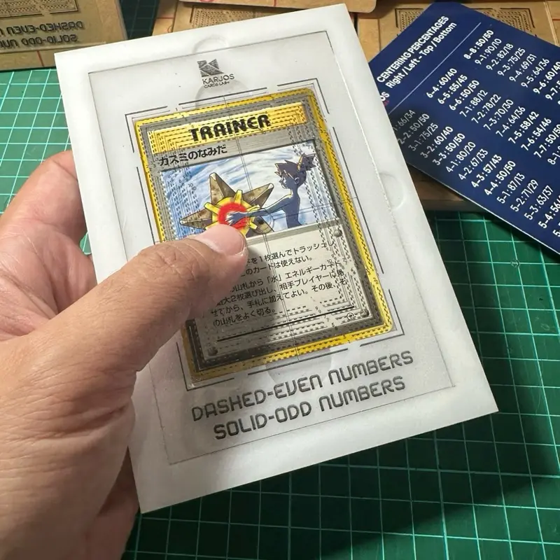 Dirancang khusus untuk kartu Pokémon TCG, alat ini membantu membaca keseimbangan Left / Right dan Top / Bottom centering dengan sistem angka presisi sehingga mempermudah menentukan kualitas kartu.