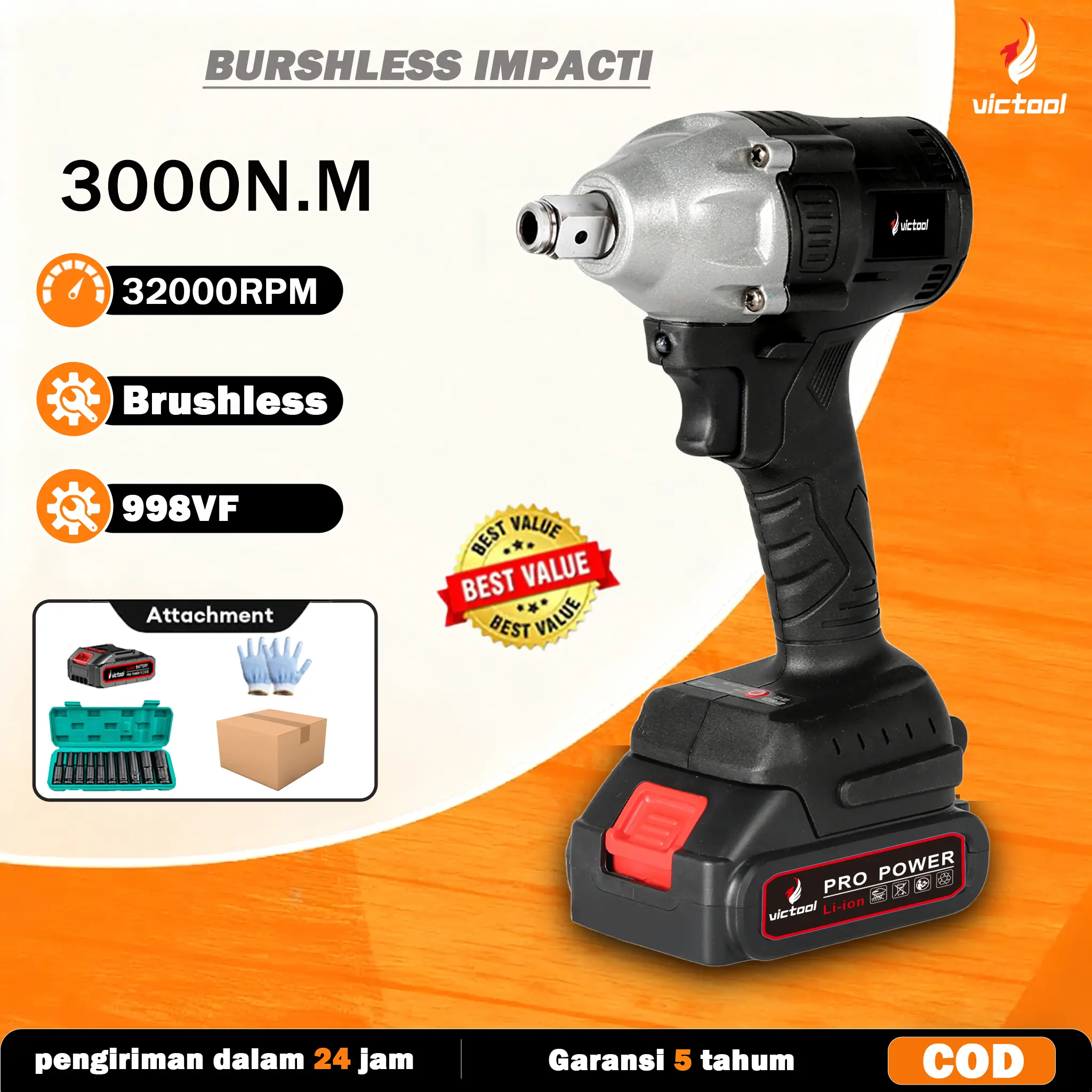 Victool Impact Wrench 21V Baterai Semua motor tembaga Cordless Kunci Impact 3000N/M Impak Buka Motor Mesin Bor Untuk Baut Mobil