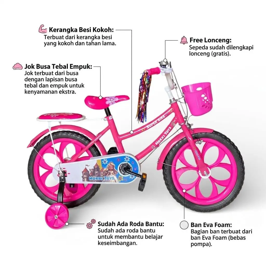 Sepeda mendarat dg aman tnpa ada yg riject, bagus sesuai pesanan mskipun nyari yg wrna pink dpetnya tosca tpi cakep jga wrna toscanya jrg ada yg punya