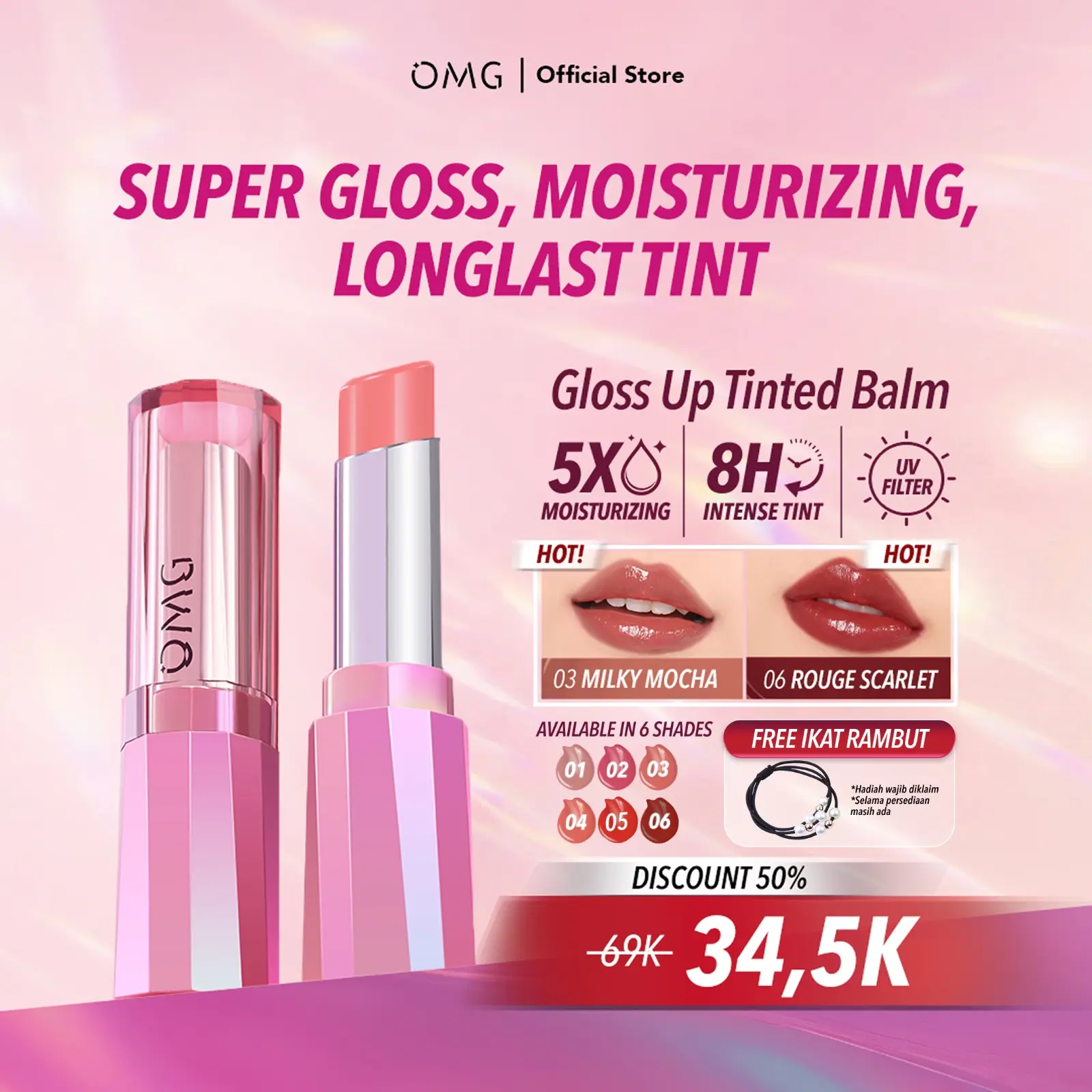 Bibir sehat, lembap, dan berkilau dalam satu swipe dengan OMG OH MY GLAM Gloss Up Tinted Lip Balm — perpaduan sempurna lip balm, lip tint, dan lip gloss dalam satu produk inovatif!