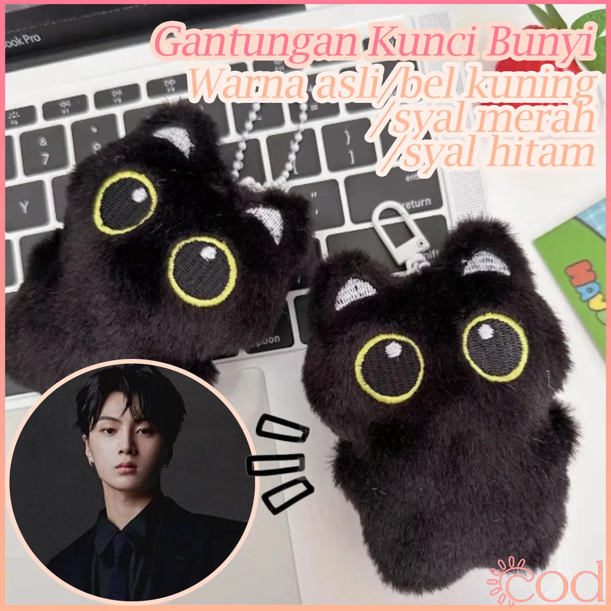 5. Gantungan Kunci Kucing Hitam Bunyi Jay Enhypen 1Buah Bahan Mewah dengan Lonceng Syal, Warna Asli/Bel Kuning/Syal Merah/Syal Hitam, Boneka Lembut Aksesoris Tas Ransel Hadiah Anak Perempuan Remaja