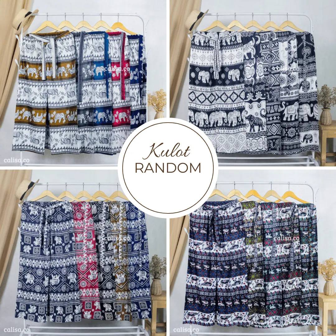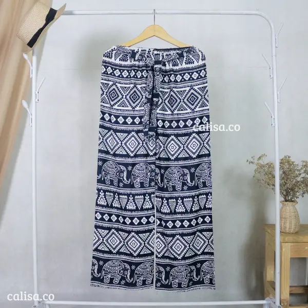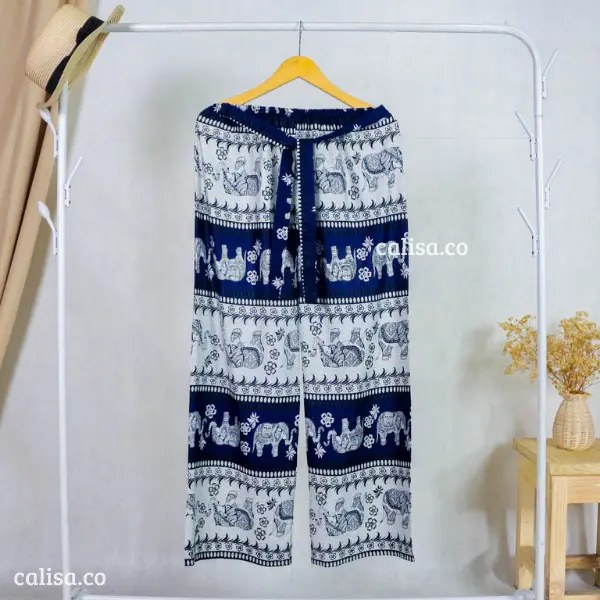 Celana Kulot Motif Gajah Thailand Viral Unisex Ukuran L XL XXL Rayon Super Lembut, Flowly, Nyaman Dipakai Harian Fashion Trendy | Calisa.co