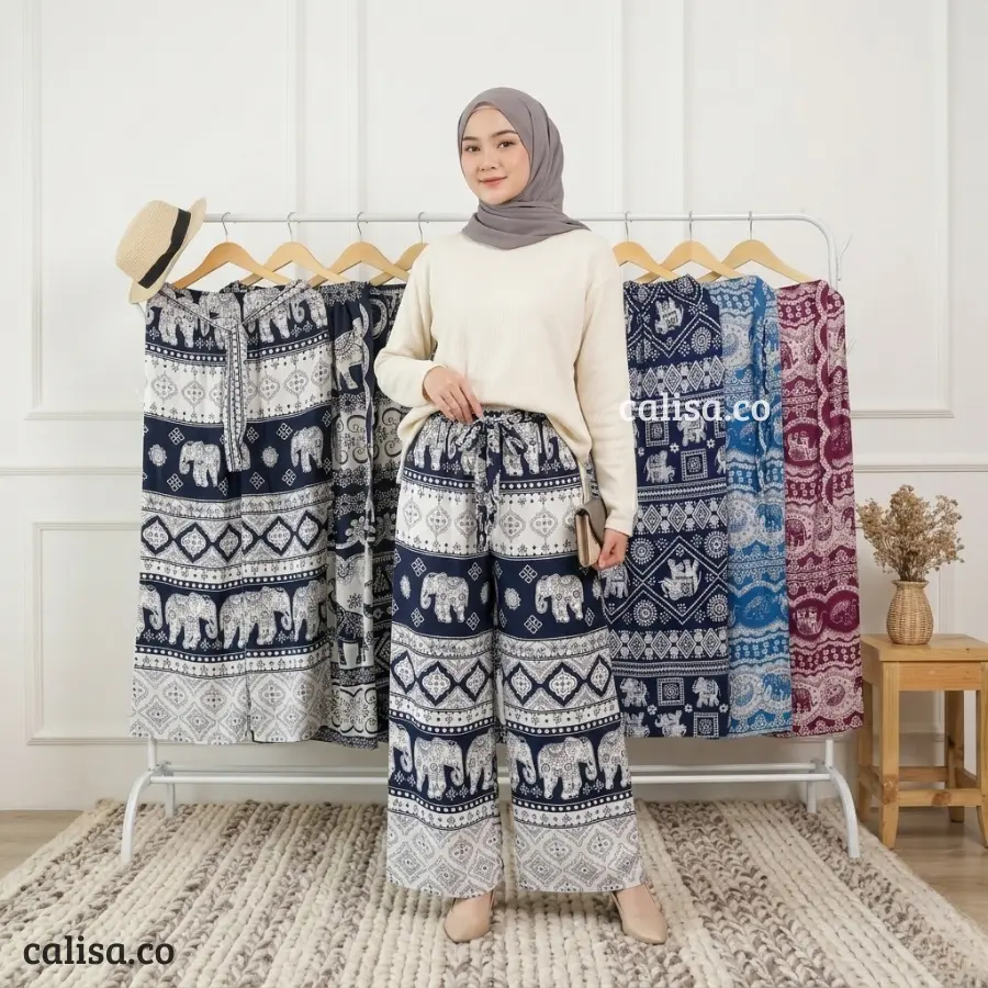 5. Celana Kulot Motif Gajah Thailand Viral Unisex Ukuran L XL XXL Rayon Super Lembut, Flowly, Nyaman Dipakai Harian Fashion Trendy | Calisa.co