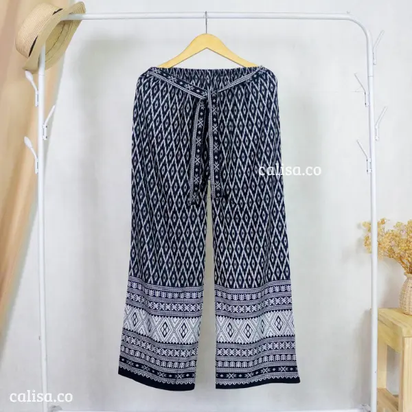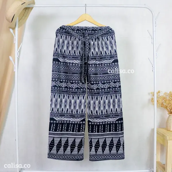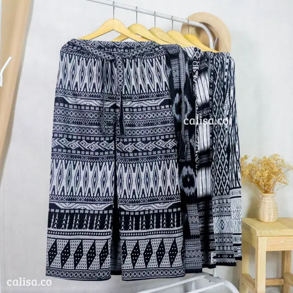 Celana Kulot Motif Songket Hitam Unisex L XL XXL Bahan Rayon Premium Super Adem Lembut Flowly Nyaman Dipakai Seharian | Calisa.co