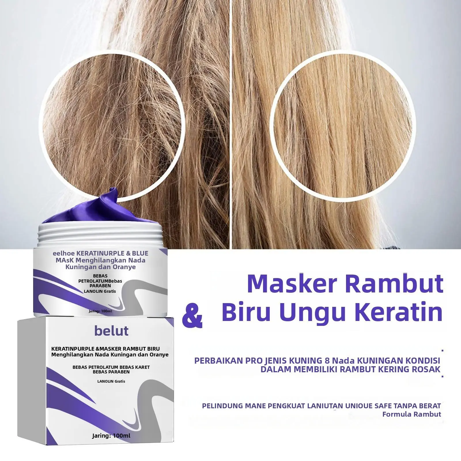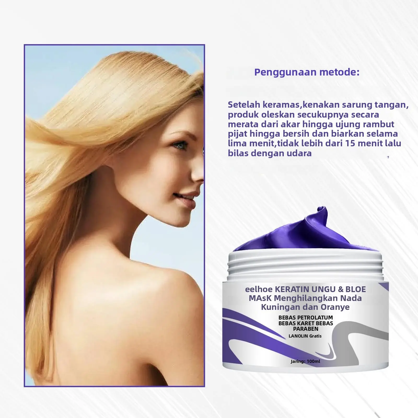 Masker Rambut Ungu EELHOE Melembapkan Ujung Rambut Terbelah, Rambut Kering Perm, dan Masker Melembapkan Rambut Halus Conditioner Vitamin Haircare Shampoo Perawatan Ketombe Kutu