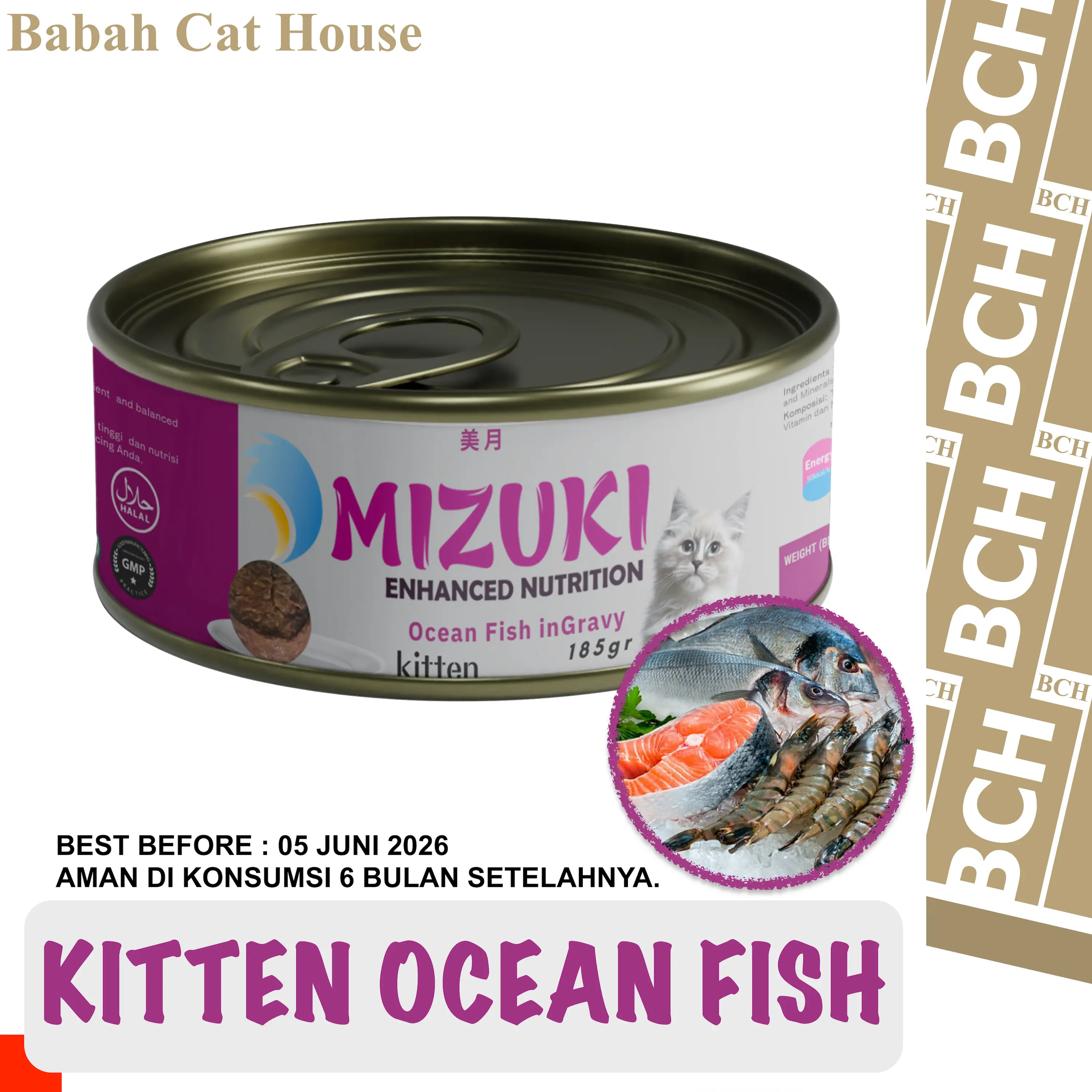 ยทMizuki Premium Cat Food Adult Ocean Fish Can: Varian ikan laut yang juga dikemas dalam ukuran 185 gram.