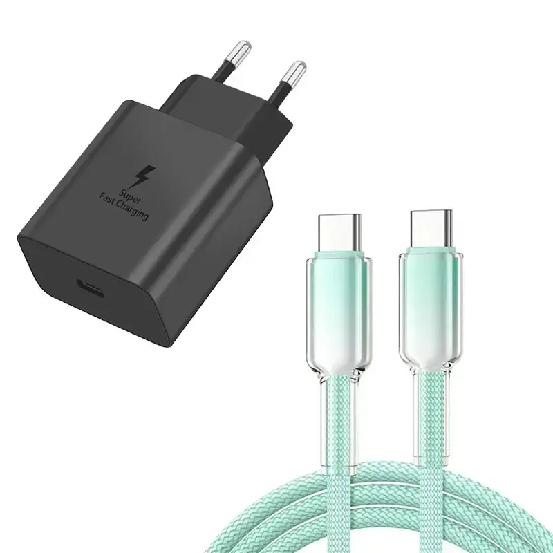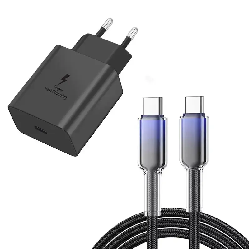 Pengisi daya cepat 45W untuk ponsel Sam Android. Dilengkapi kabel data Type-C ke Type-C panjang 1m/2m. Adapter hitam dan putih. Cocok untuk A72, A73, A52, A32, W20, A16, A33, S9, A80, A25, A34, S25, S25 FE, S24 Ultra Plus, S22, S23.