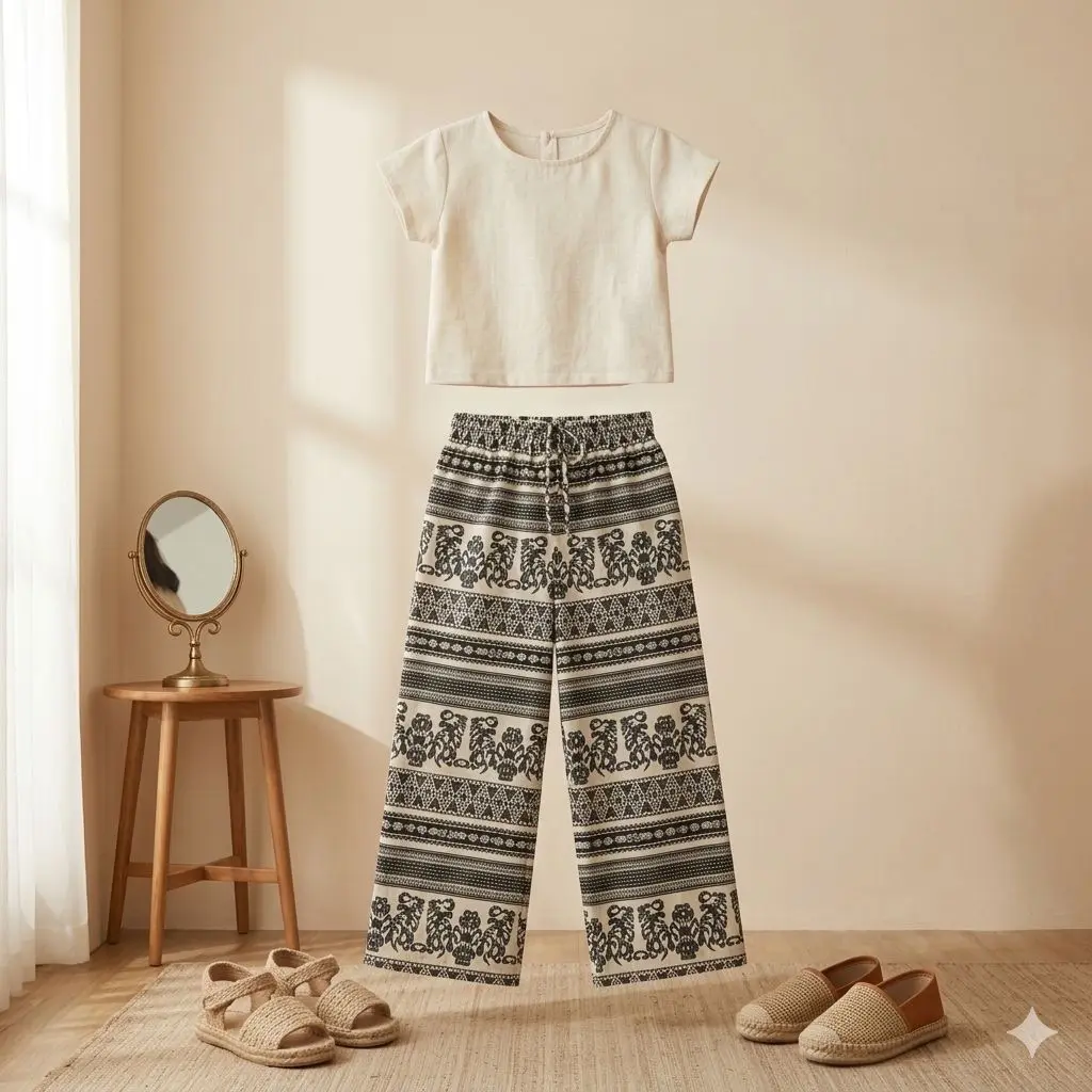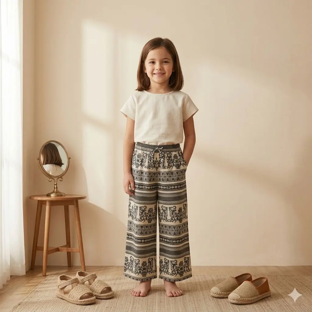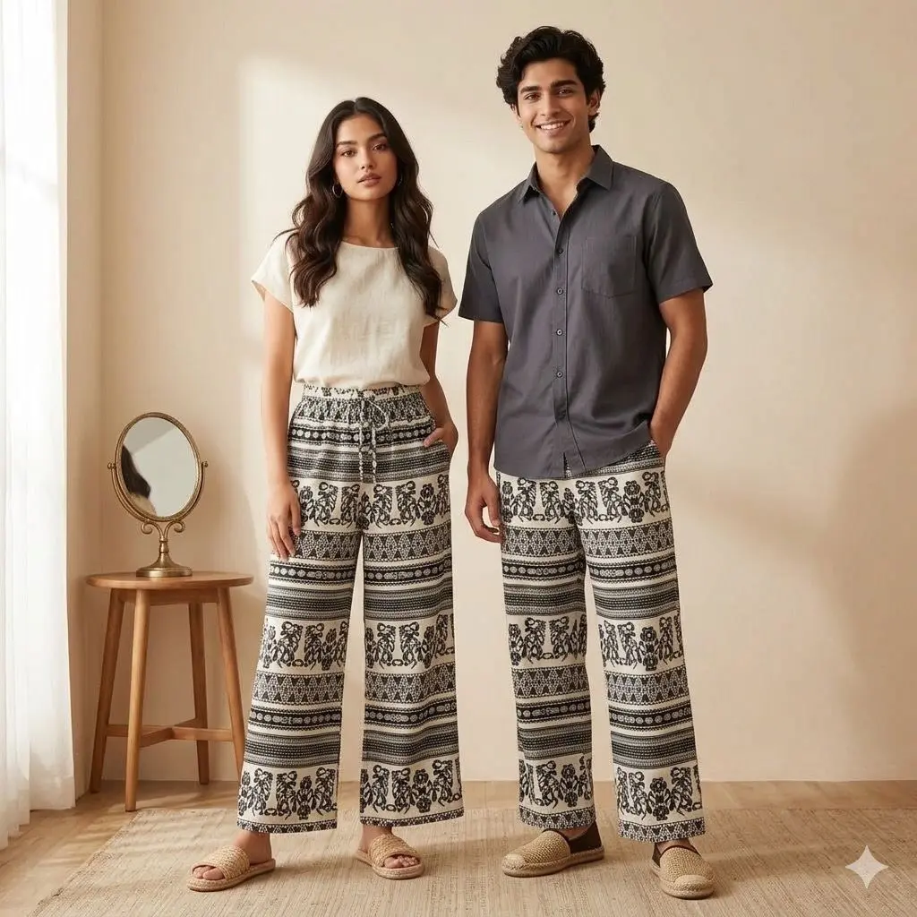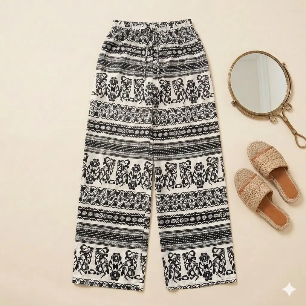 Celana kulot motif asmat menggunakan bahan katun rayon yang lembut, ringan, dan nyaman dipakai.