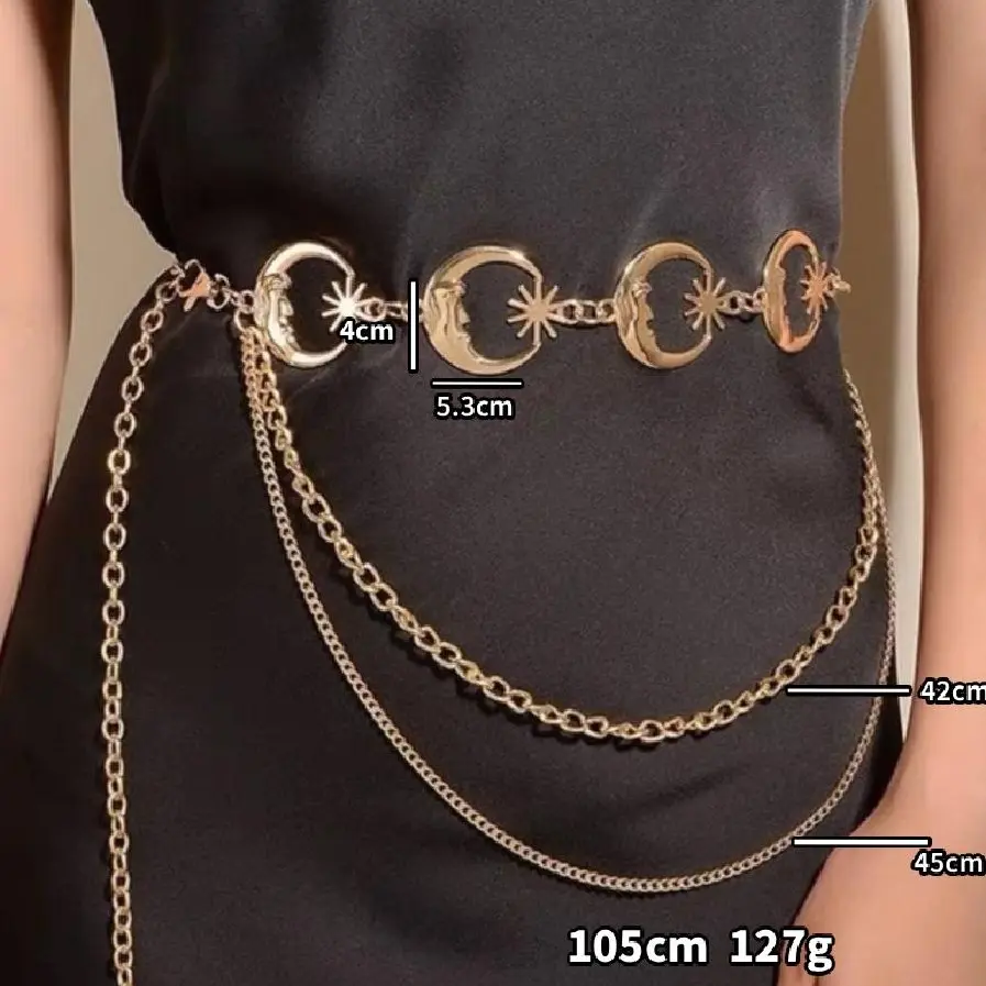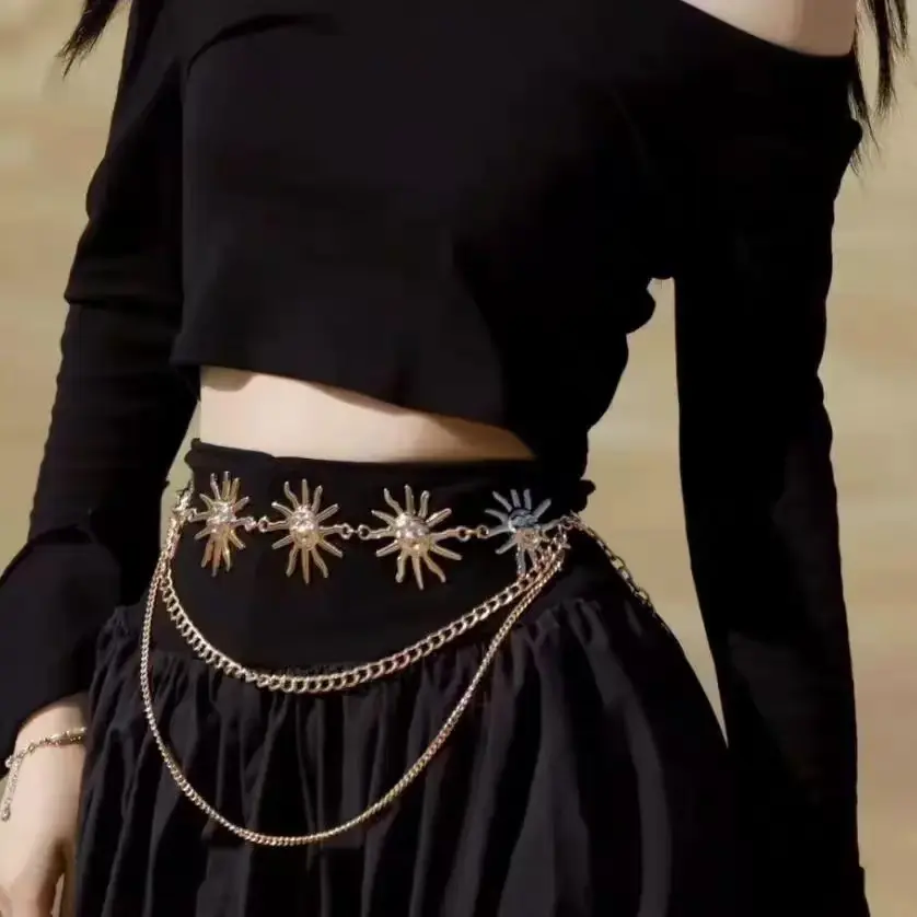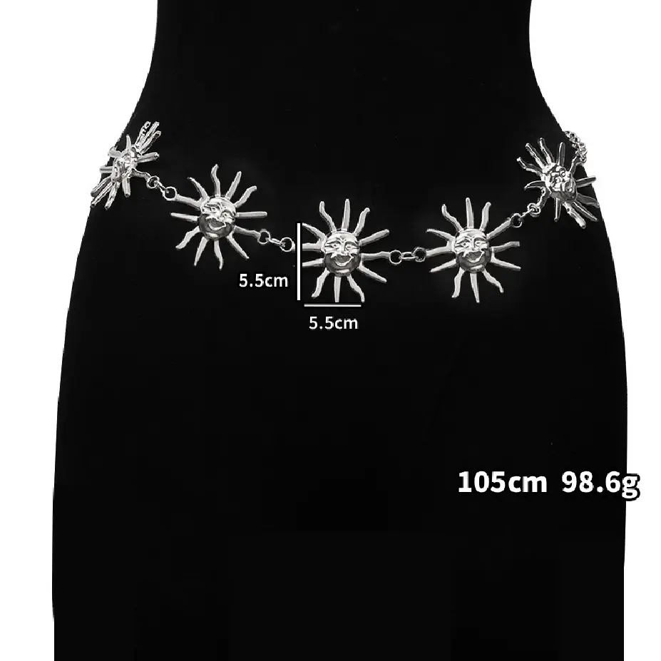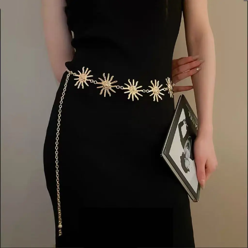 Sabuk Pinggang Rantai Matahari adalah aksesori yang multifungsi dan stylish. Dengan desain geometris dan pinggiran berlapis ganda, sabuk ini menjadi pilihan yang tepat untuk penampilan Anda. 🌟