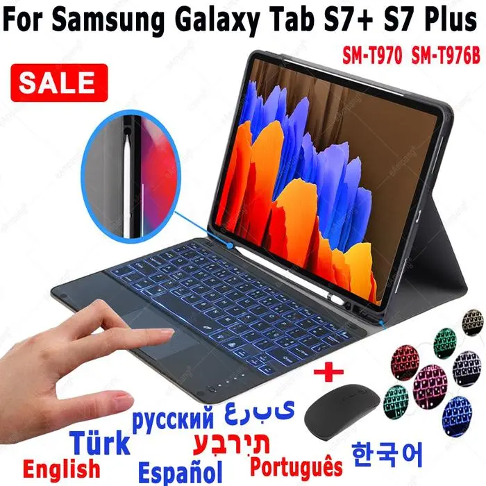 Touchpad Backlit Keyboard Case For Samsung Galaxy Tab S7+