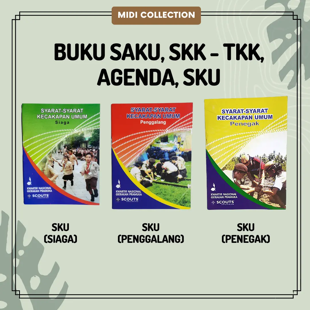 4. Buku SKU (Syarat Kecakapan Umum): Tersedia untuk golongan Siaga, Penggalang, Penegak. Buku wajib sebagai kontrol pencapaian syarat kenaikan tingkatan