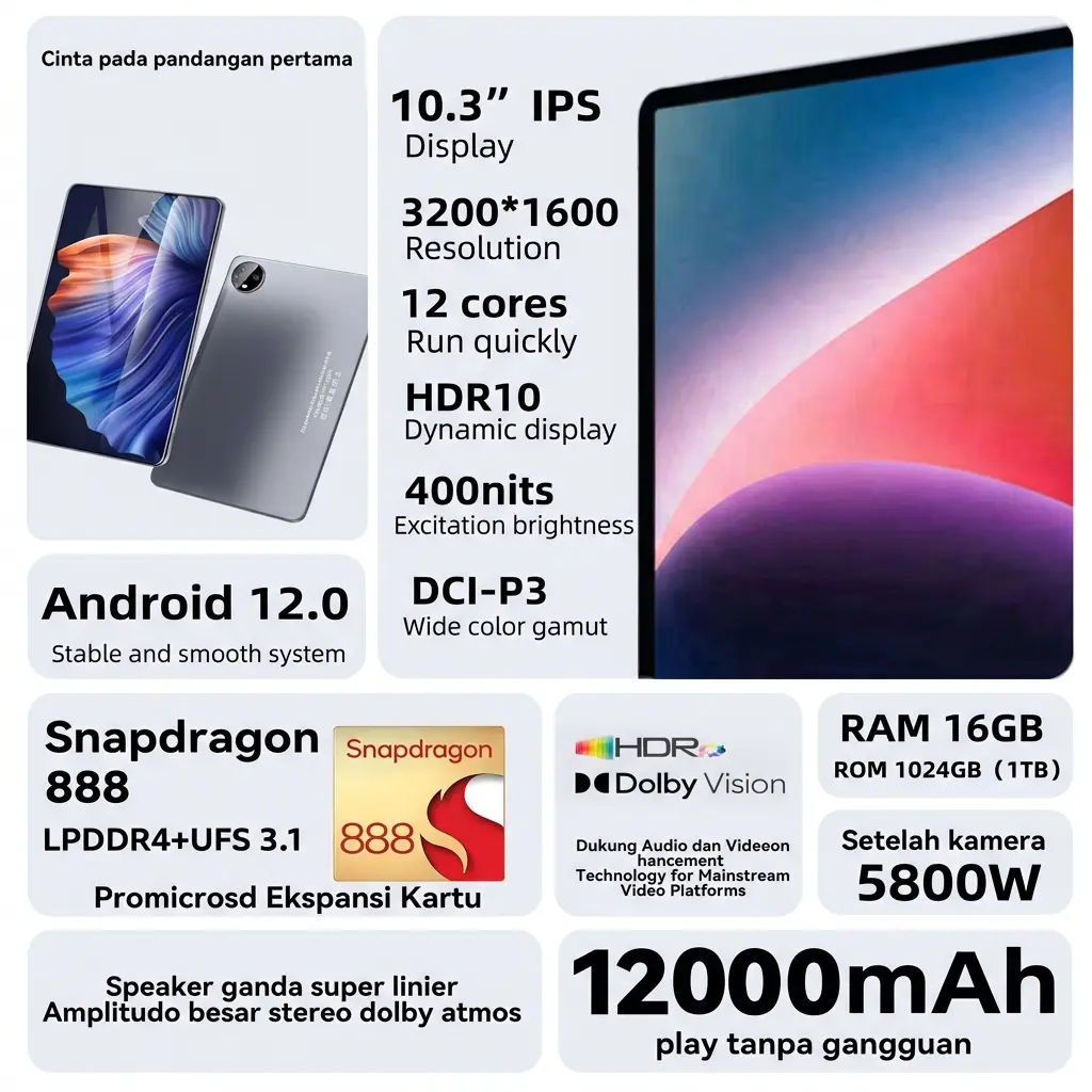 2026 H13 Pro 10.3" Tablet [16GB+1TB]Ultra-tipi l Tablet cerdas HD I Hiburan Kantor1Pengalaman Pro Layaknya PCI120Hz OLEDRealColor FullView Display I