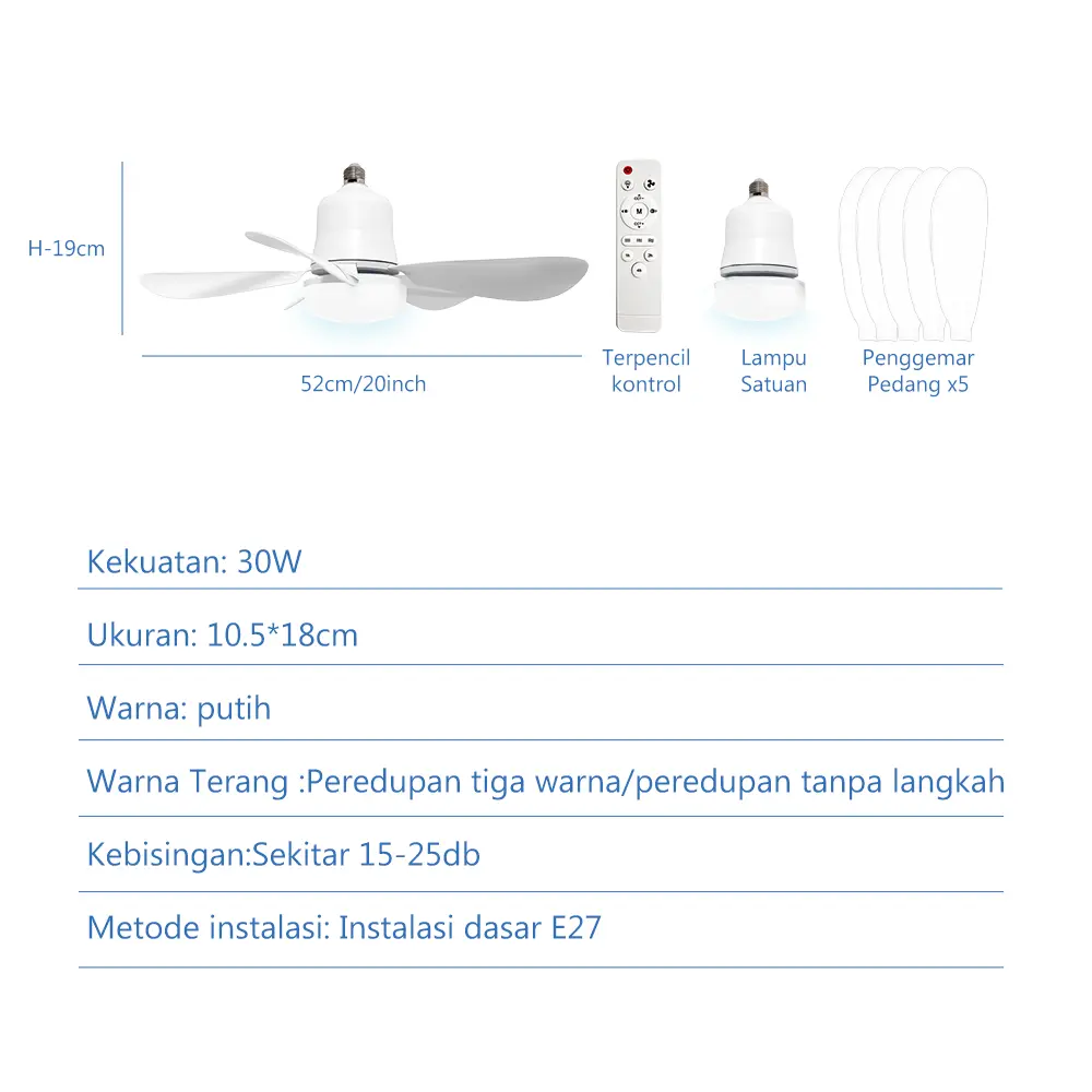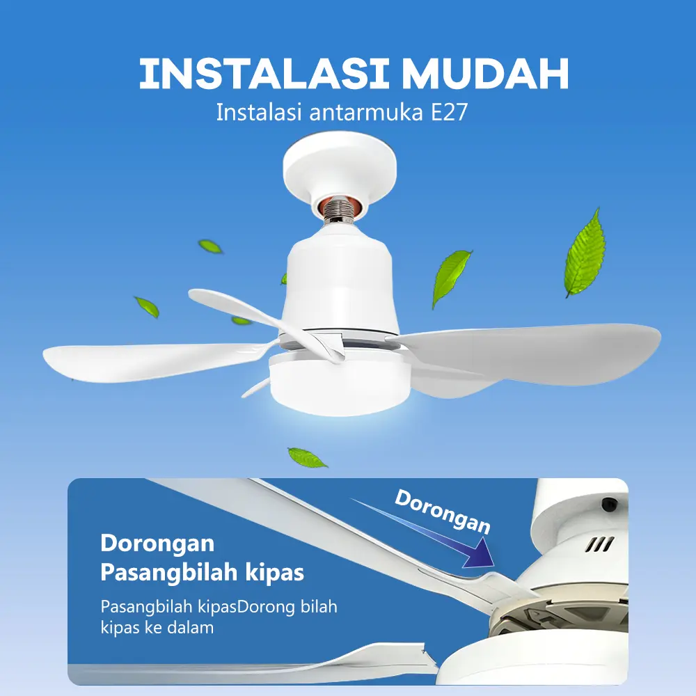 ·Pemasangan mudah: Paket termasuk badan lampu, 5 bilah, remote control. Tidak memerlukan kabel. Bilah dapat dibongkar untuk pembersihan.