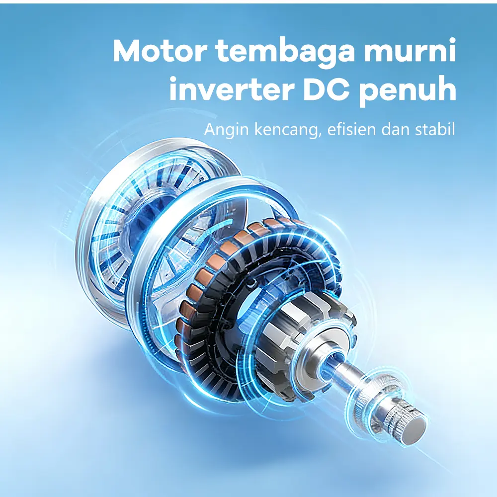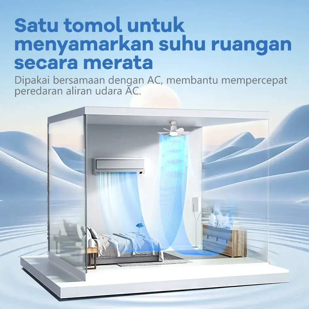 ·Remote control multifungsi: Kontrol 3 kecepatan angin (angin, pukulan, kuat) dan pengaturan waktu (1/2/4 jam). Fungsi memori disimpan saat dimatikan.