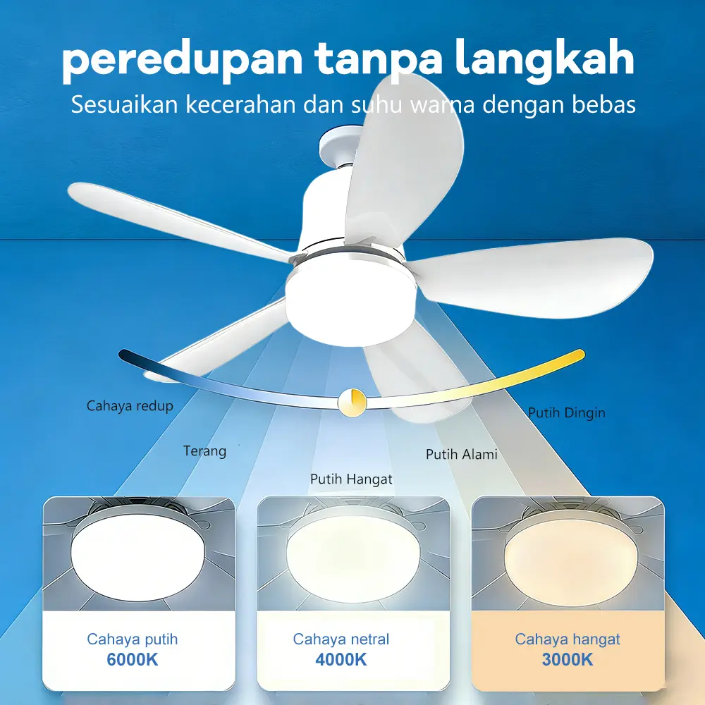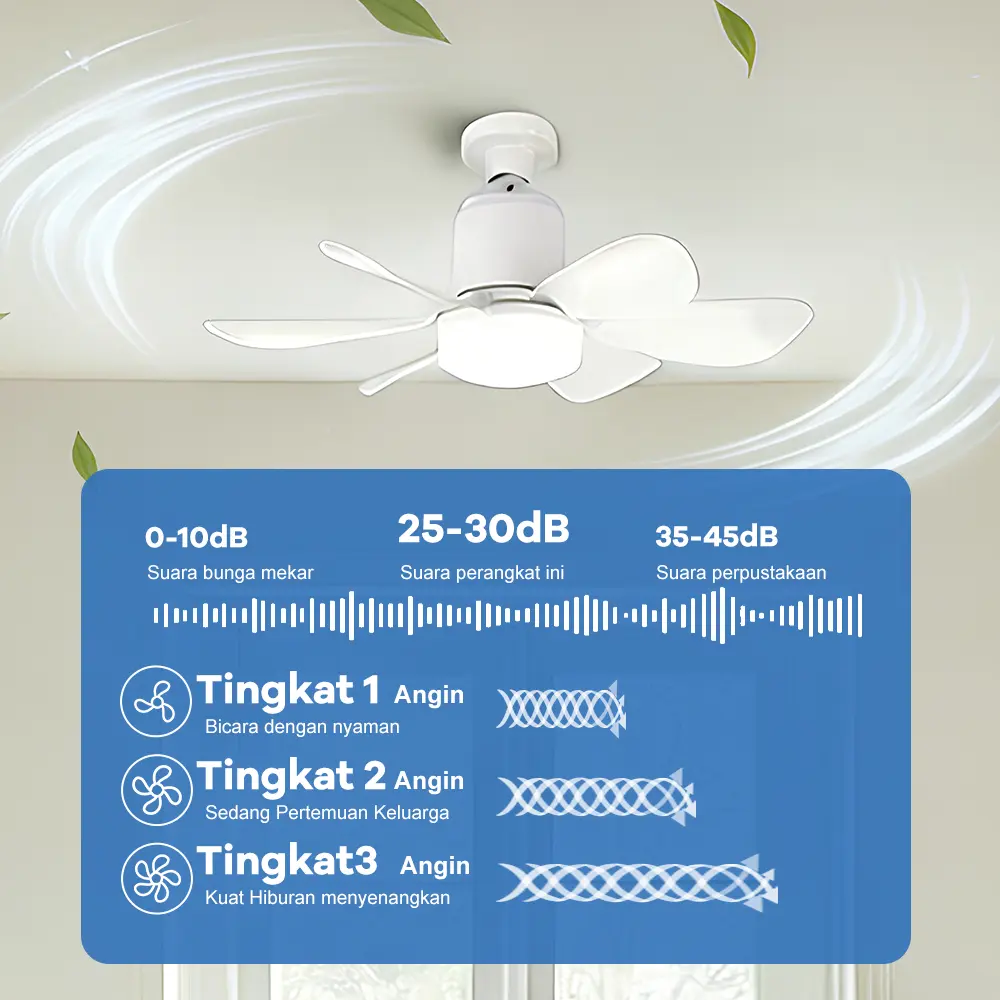 ·Volume Kecil & Angin Kuat: Kipas langit-langit 18cm dengan 5 kipas ABS dan motor tembaga murni. Hemat ruang dan angin kuat.