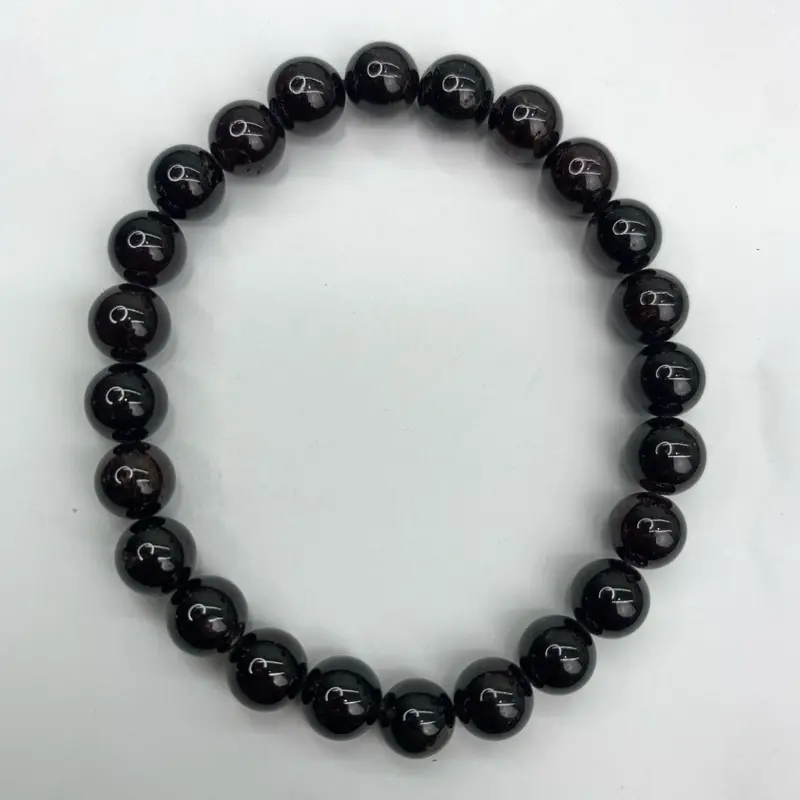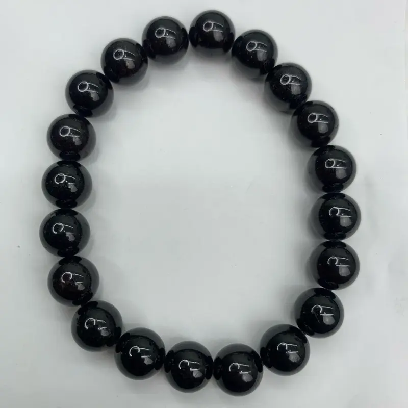 ·Batu Red Garnet: Gelang ini terbuat dari batu red garnet. Warna batu sekilas hitam, namun seratnya berwarna merah.
