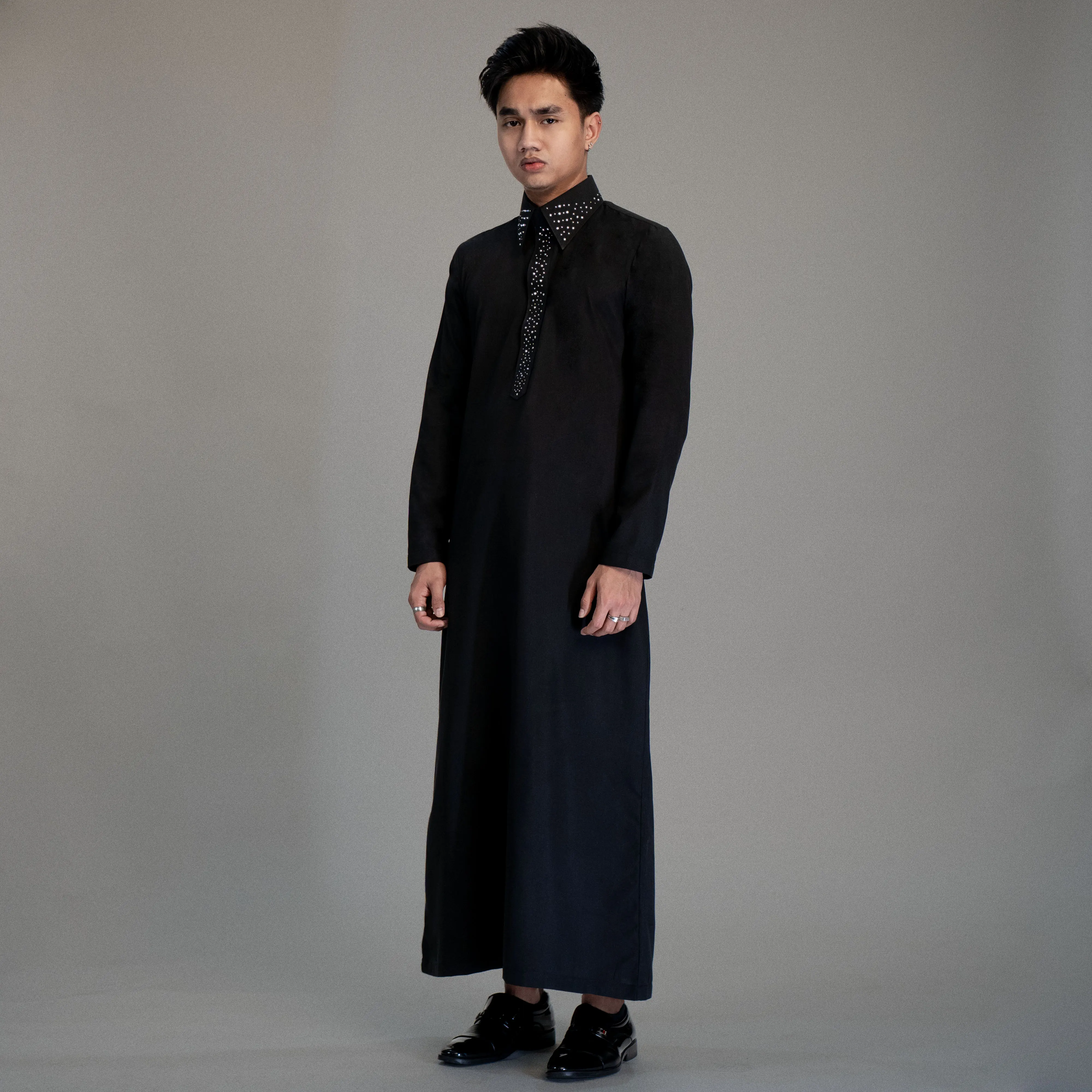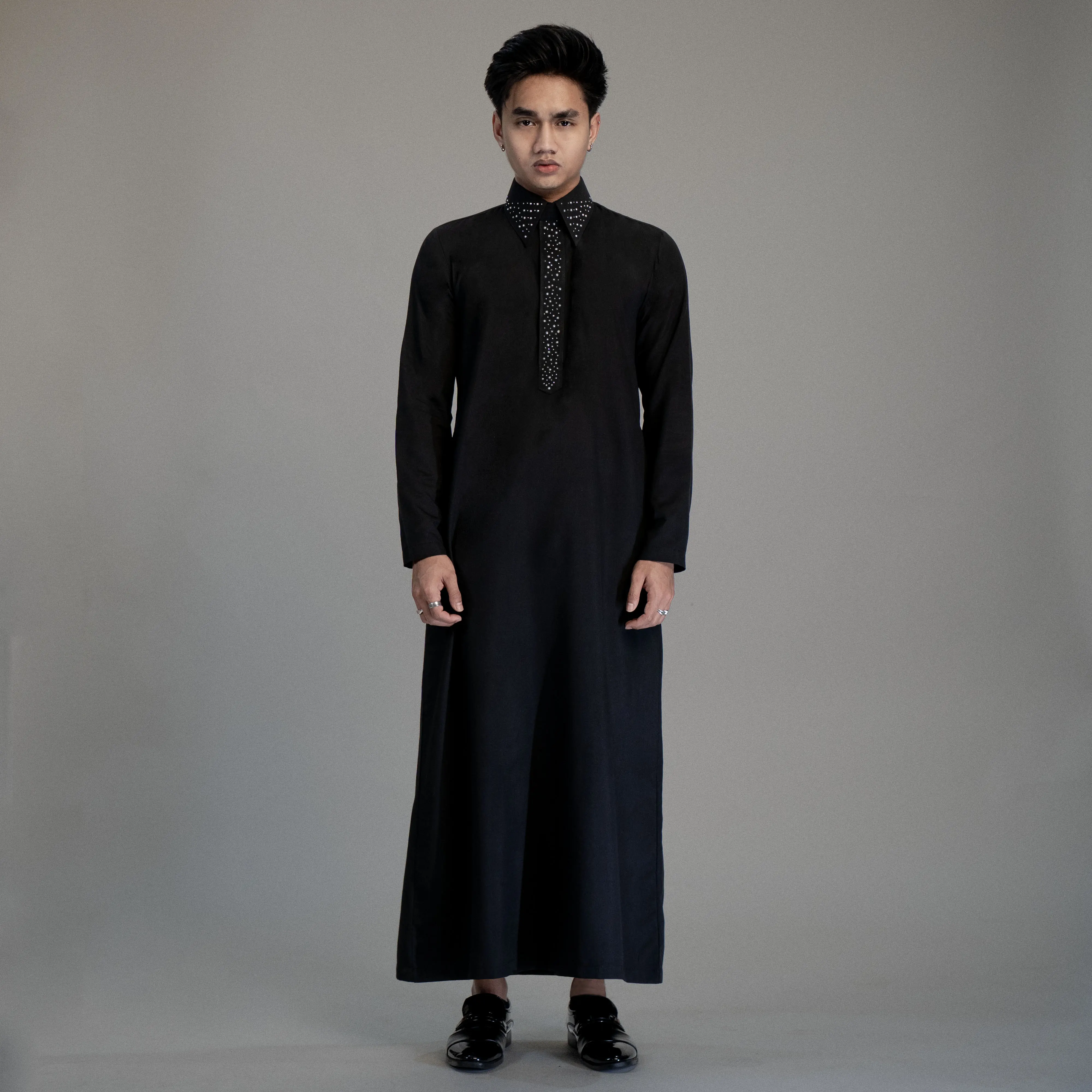 Gamis Pria Rhinestone Slim Fit – Hitam Elegan