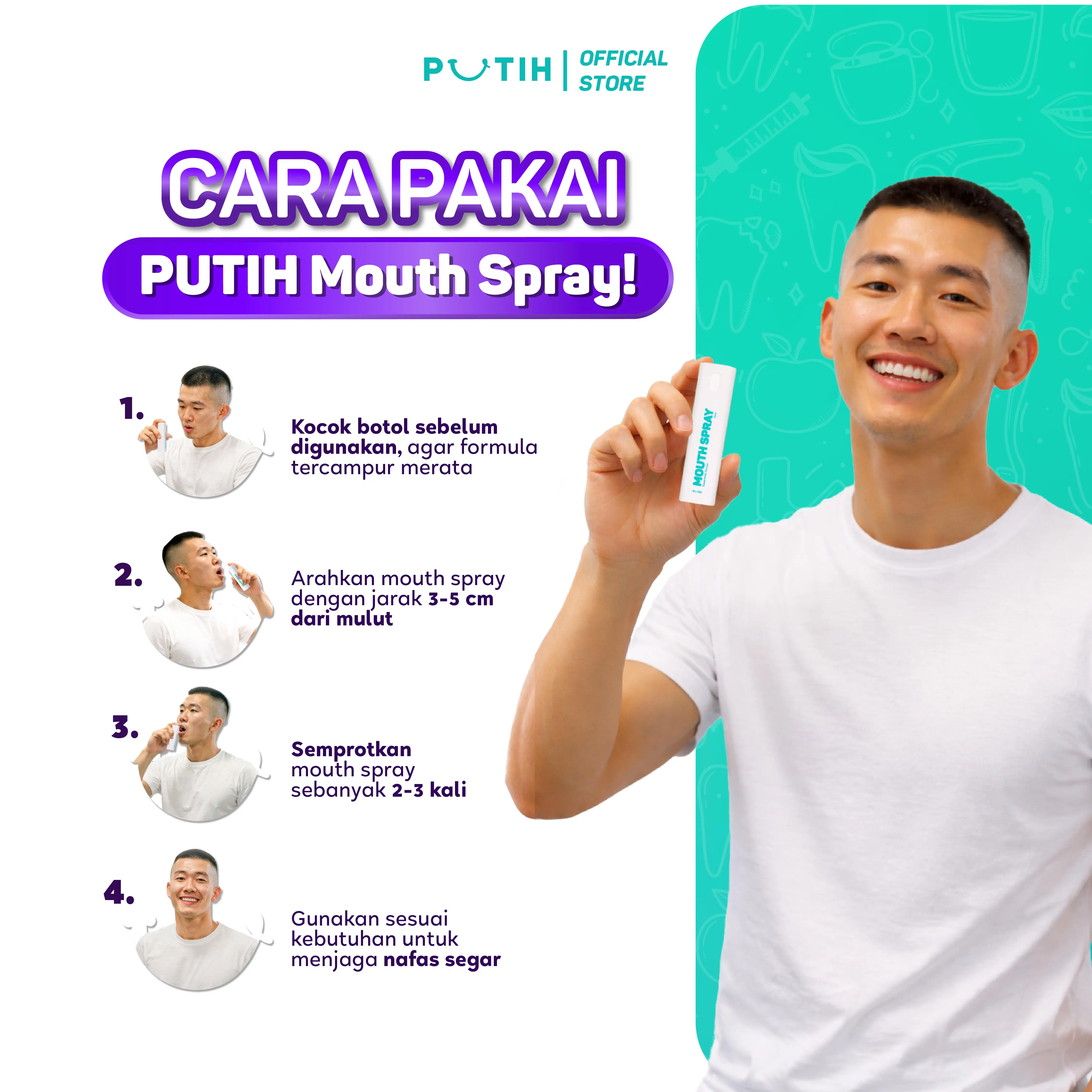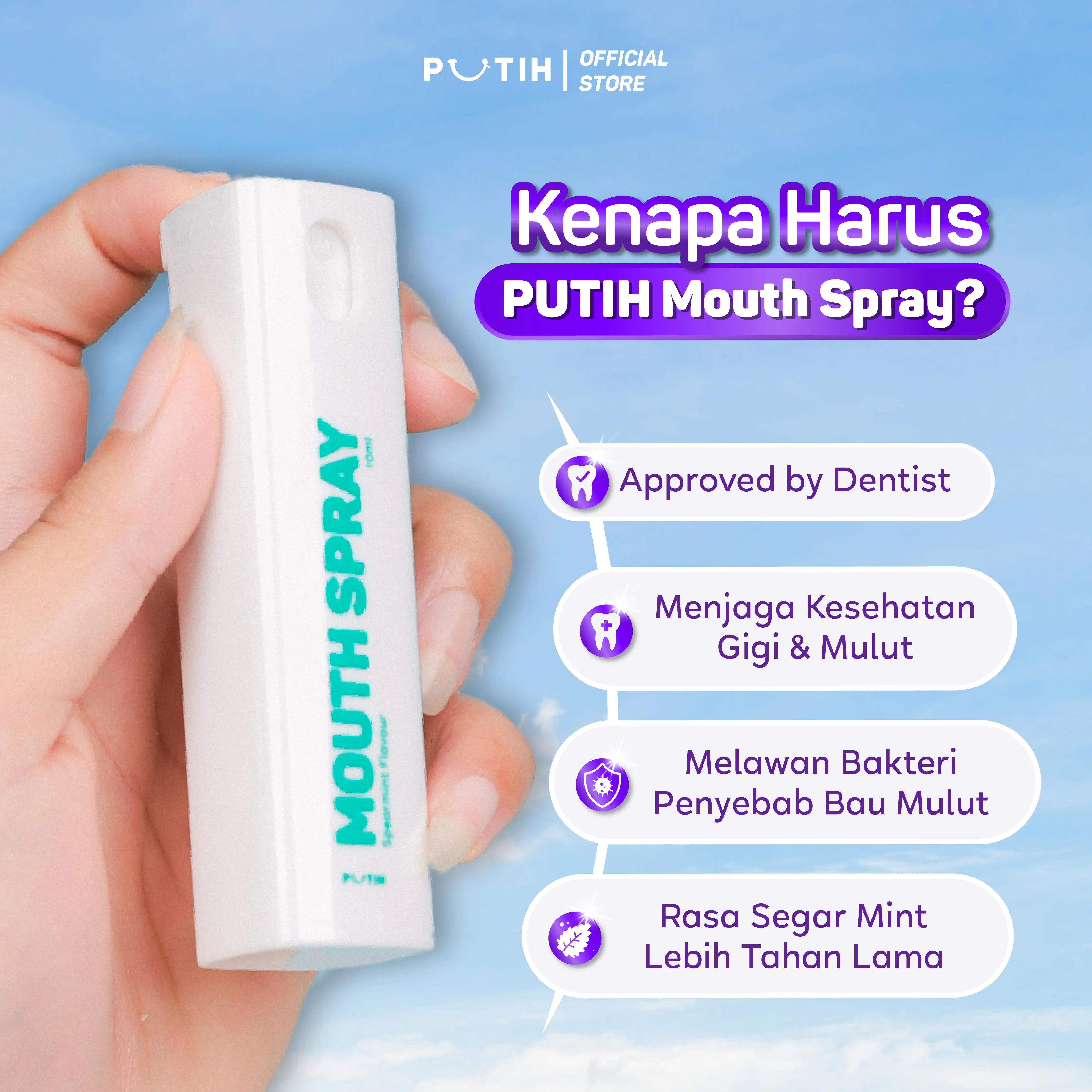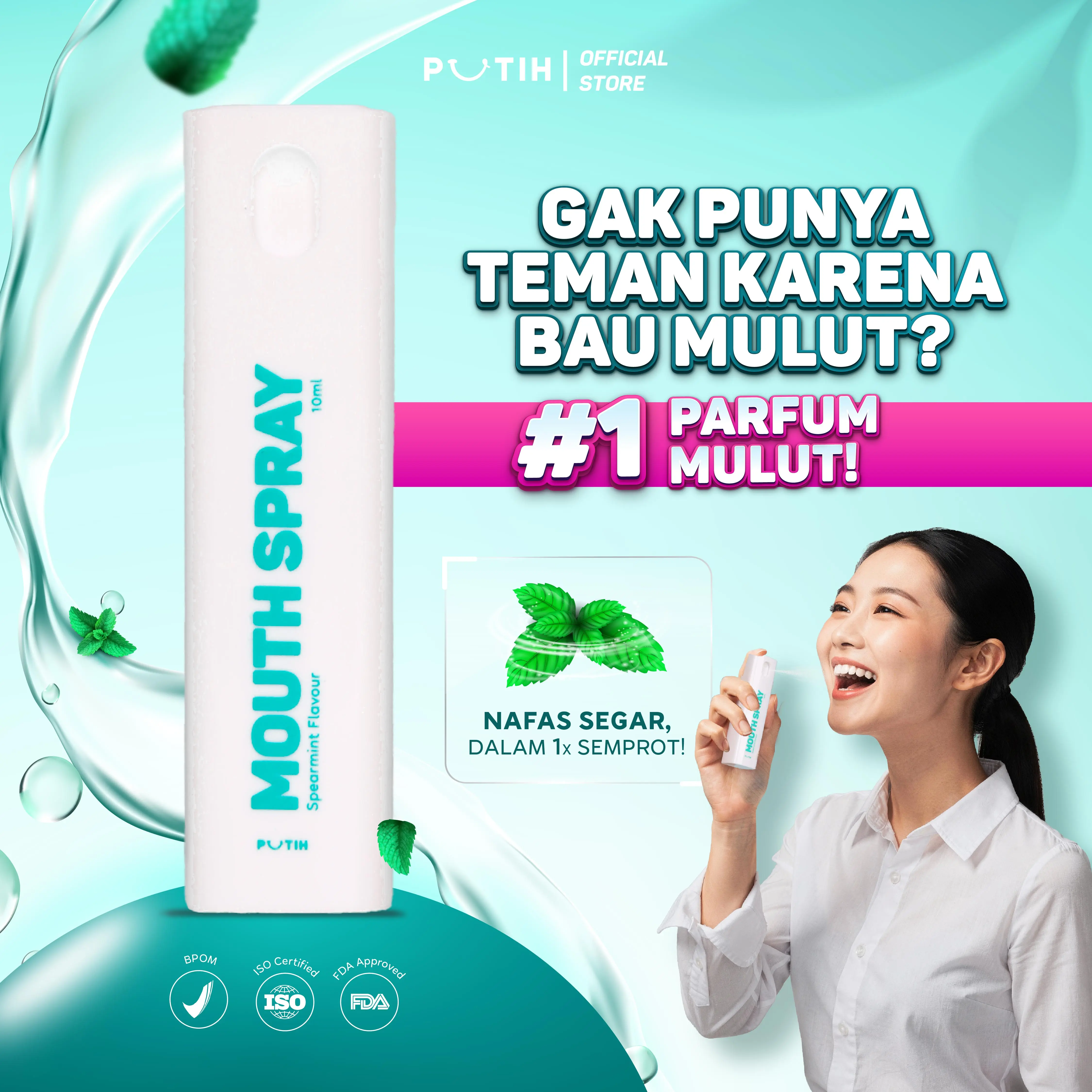PUTIH Mouth Spray Solusi praktis untuk menjaga napas tetap segar kapan saja! Cukup 1x semprot, napas langsung terasa lebih segar dengan sensasi mint yang menyenangkan. Ukurannya kecil dan mudah dibawa, cocok digunakan setelah makan, sebelum meeting, atau saat bepergian.