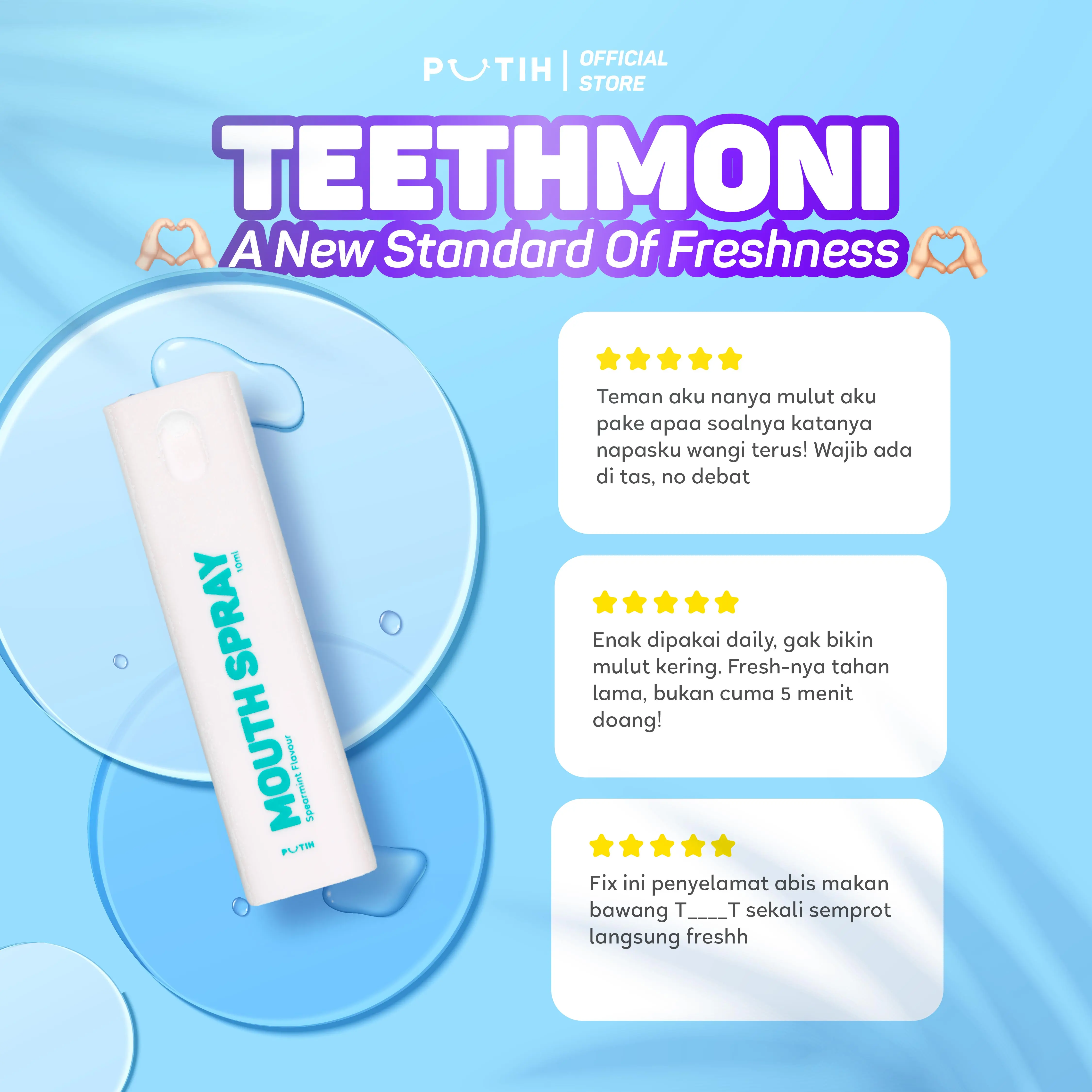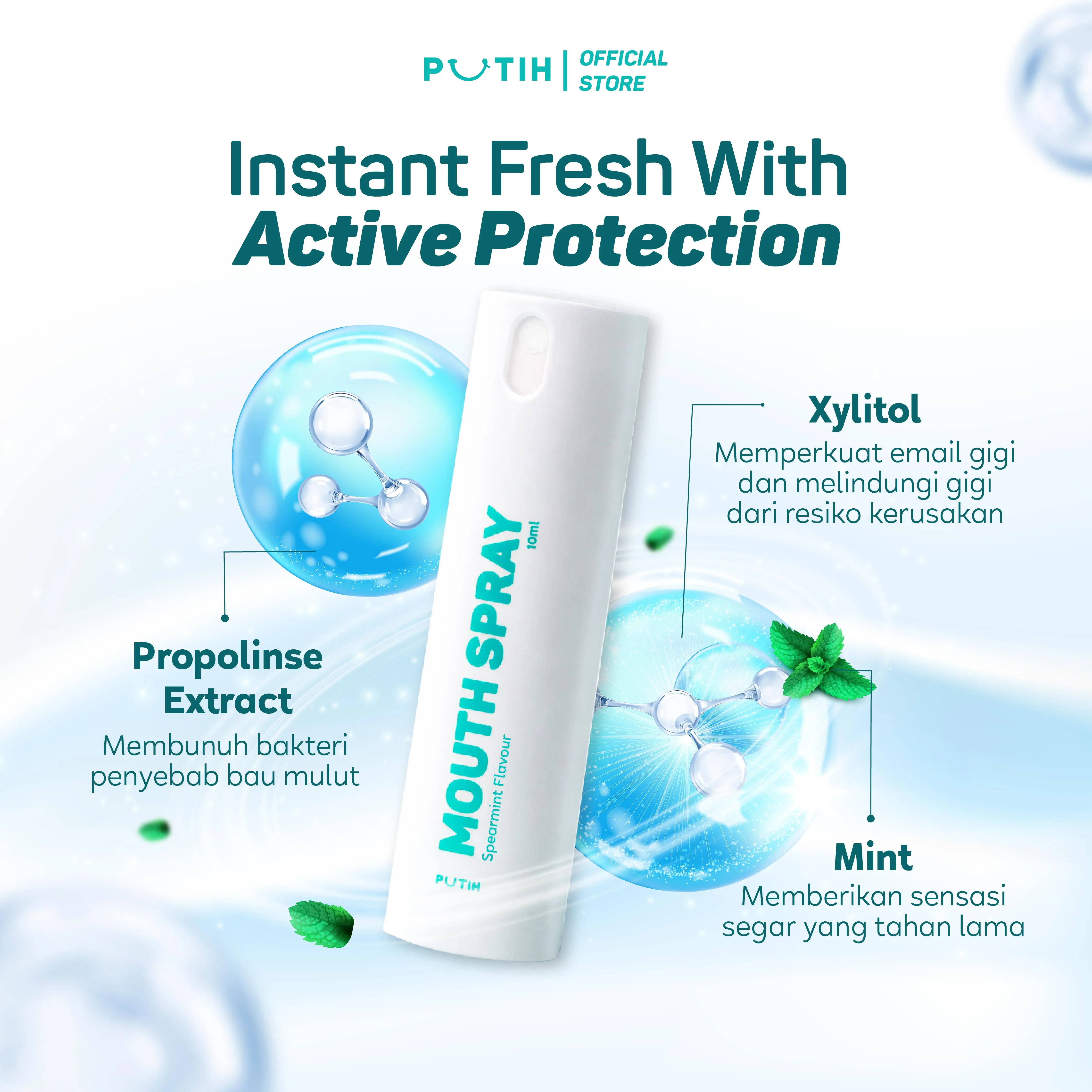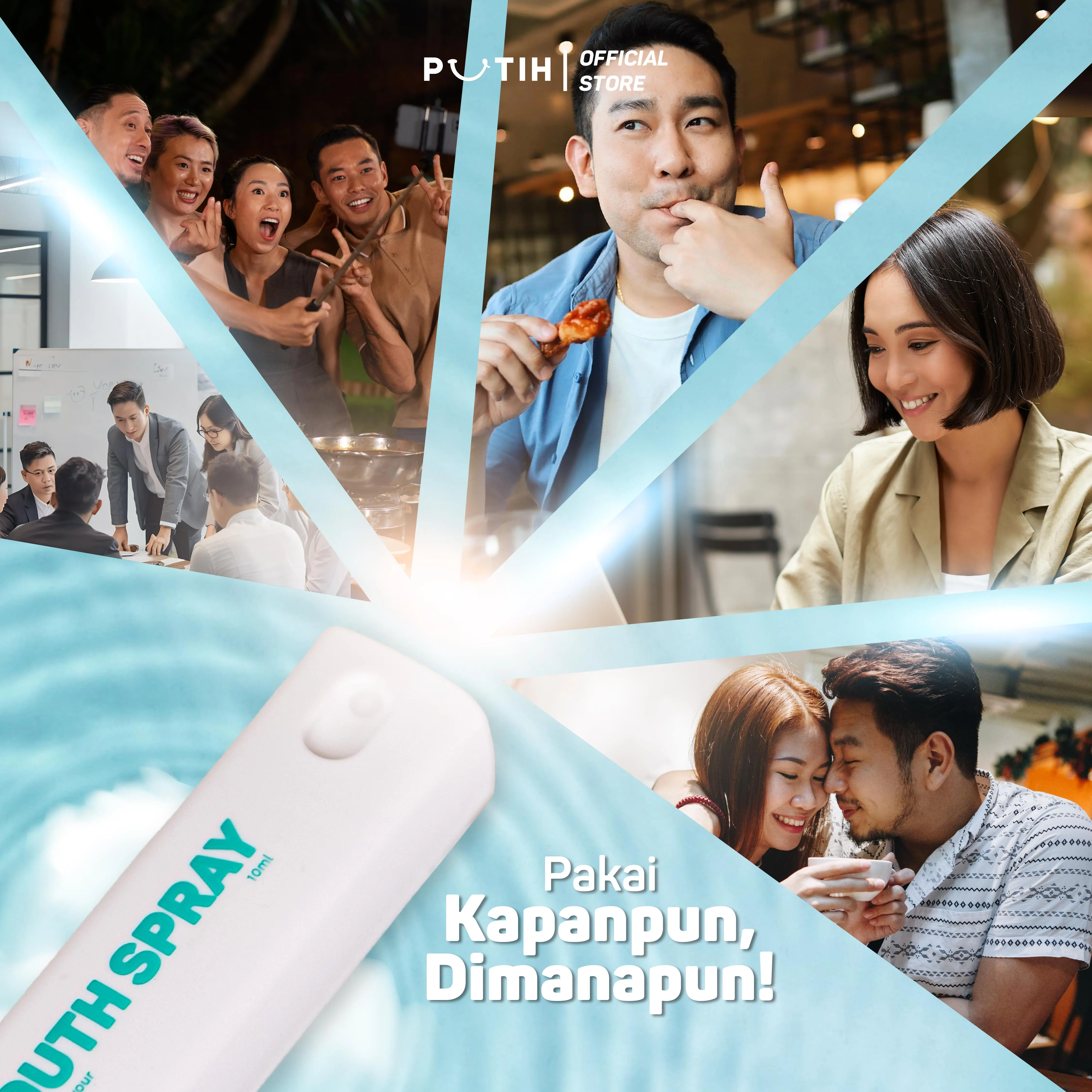PUTIH Mouth Spray Solusi praktis untuk menjaga napas tetap segar kapan saja! Cukup 1x semprot, napas langsung terasa lebih segar dengan sensasi mint yang menyenangkan. Ukurannya kecil dan mudah dibawa, cocok digunakan setelah makan, sebelum meeting, atau saat bepergian.