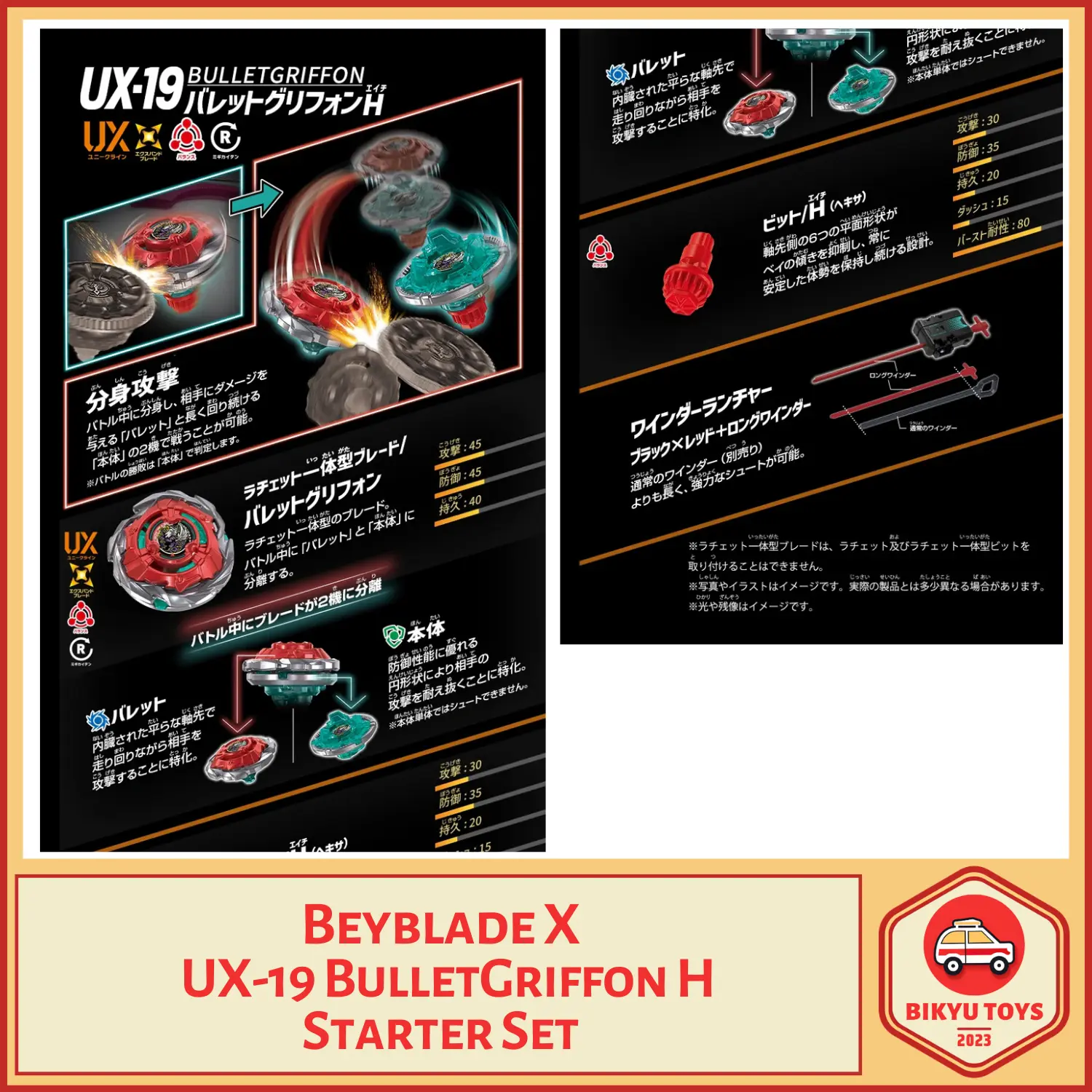 Sebagai Starter Set, BulletGriffon H siap tempur begitu Anda membukanya. Dapatkan gaya pertarungan yang kreatif dan taktis yang membuat setiap pertandingan terasa berbeda dan penuh kejutan!