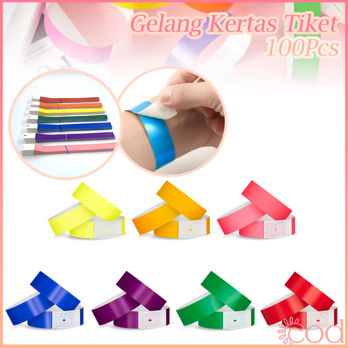 5. Gelang Tiket 100 Pcs Anti Air Sekali Pakai Bahan Kertas Sintetis PP Ukuran 10x0.75 Inci Untuk Event Pesta Wahana