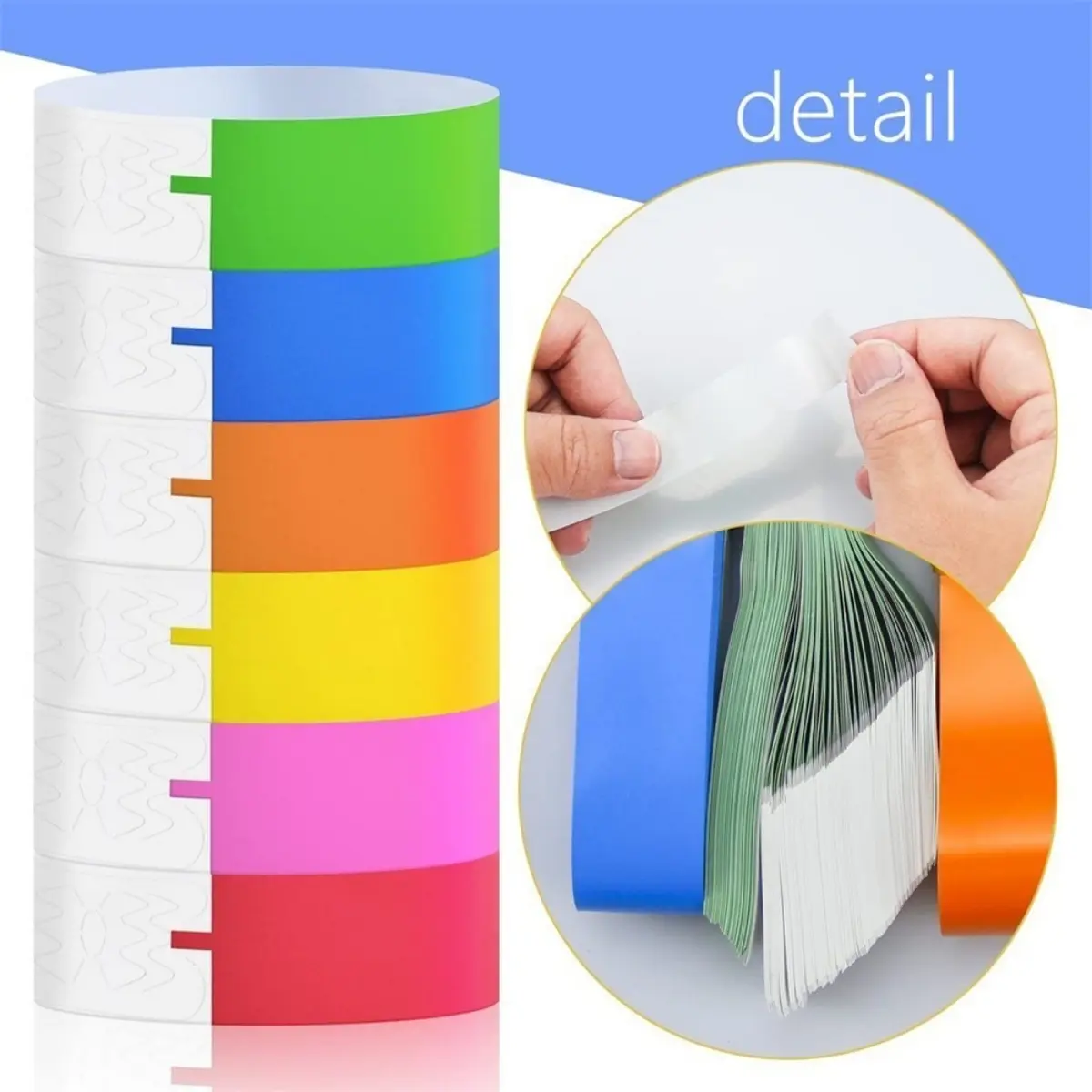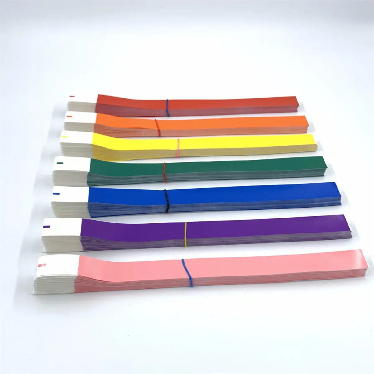 Gelang Tiket 100 Pcs Anti Air Sekali Pakai Bahan Kertas Sintetis PP Ukuran 10x0.75 Inci Untuk Event Pesta Wahana
