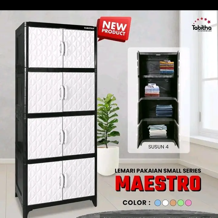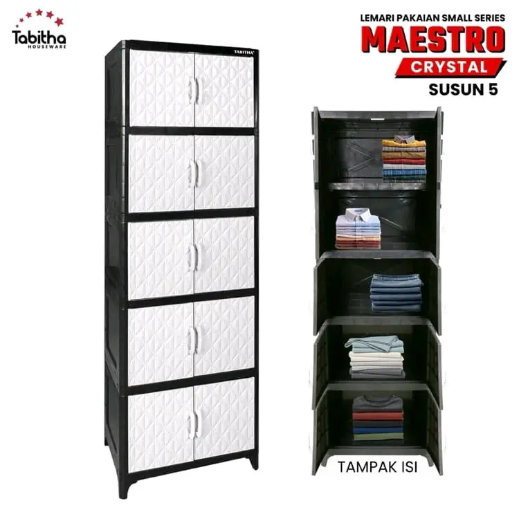 Maestro Lemari Susun 5 4 3 2 Tabitha Estetik menawarkan desain modern yang cocok untuk ruang tamu. Dengan kombinasi 5, 4, 3, dan 2 tab, lemari ini memberikan ruang penyimpanan yang efisien. Warna random menambah estetika ruangan. 📦