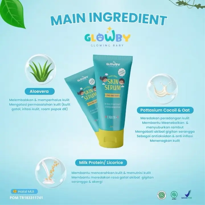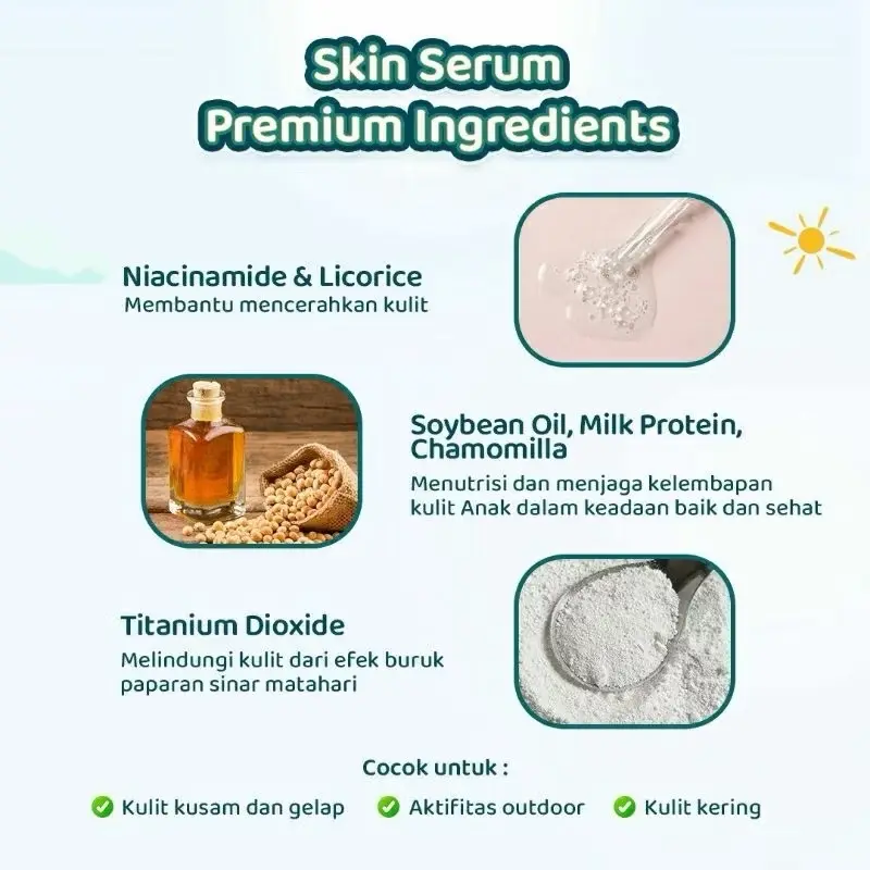 ·Fungsi: Serum dan bodylotion ini membantu menjaga kelembutan dan kesehatan kulit anak. 🌿