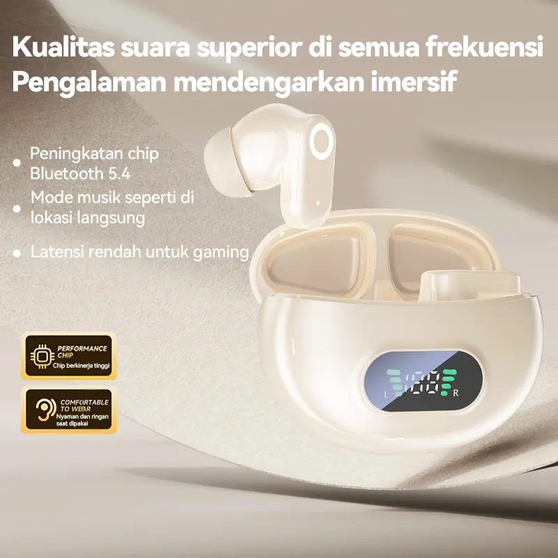 5. [COD] Yincoree [J16] Earphone Bluetooth 6.0 TWS - Reduksi Kebisingan Hybrid -48dB, 6-MIC ENC, 24 Jam Baterai, Latensi Rendah 0.04s, Audio 360° - Headset Nirkabel Kulit Gading untuk Gaming & Kerja In Ear Peredam Mikrofon Bawaan