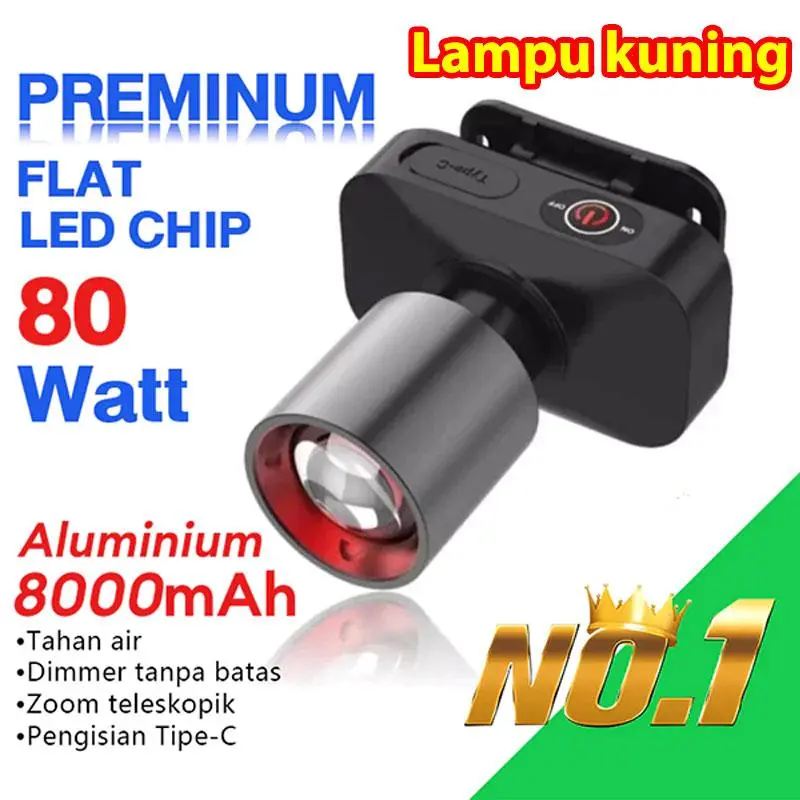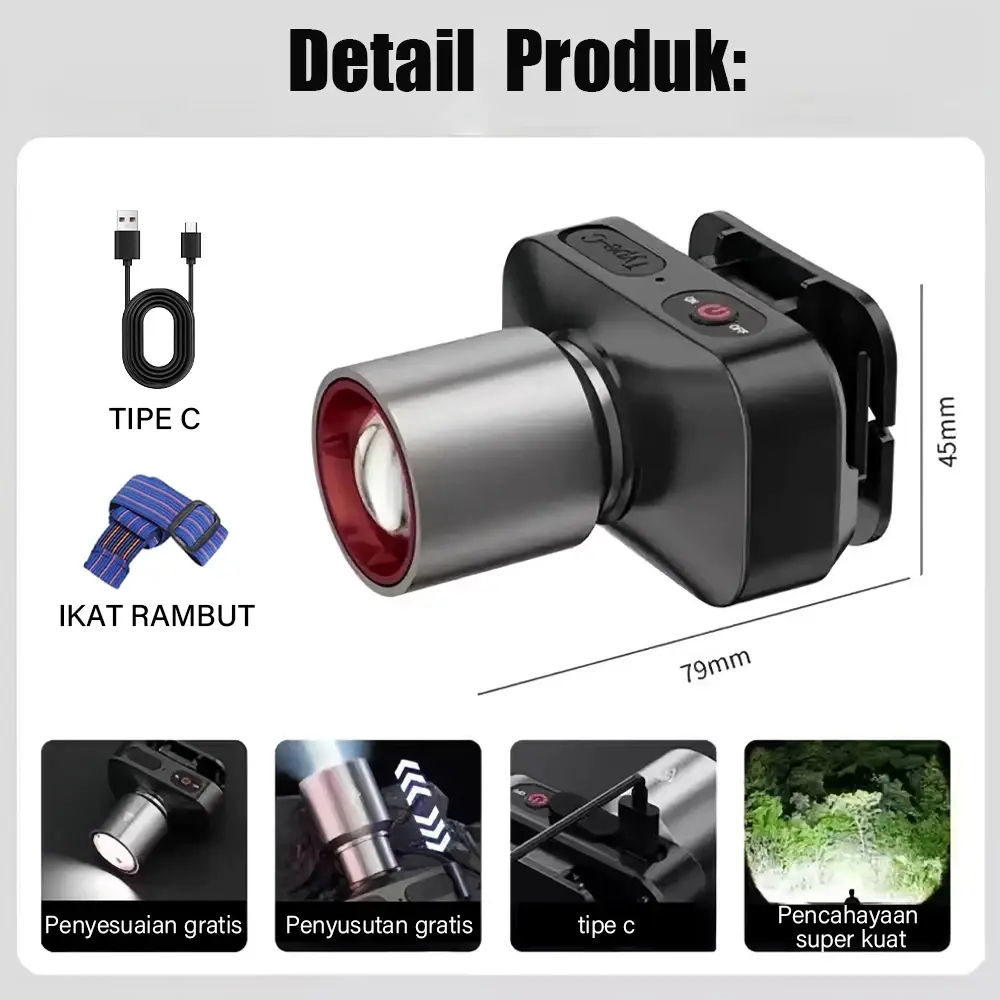 【Beli 1 gratis 1】Headlamp 1000Lumen Senter Kepala Cahaya Maksimal Plus RechargePro dengan USB Fokus & Penyebaran Zoom
