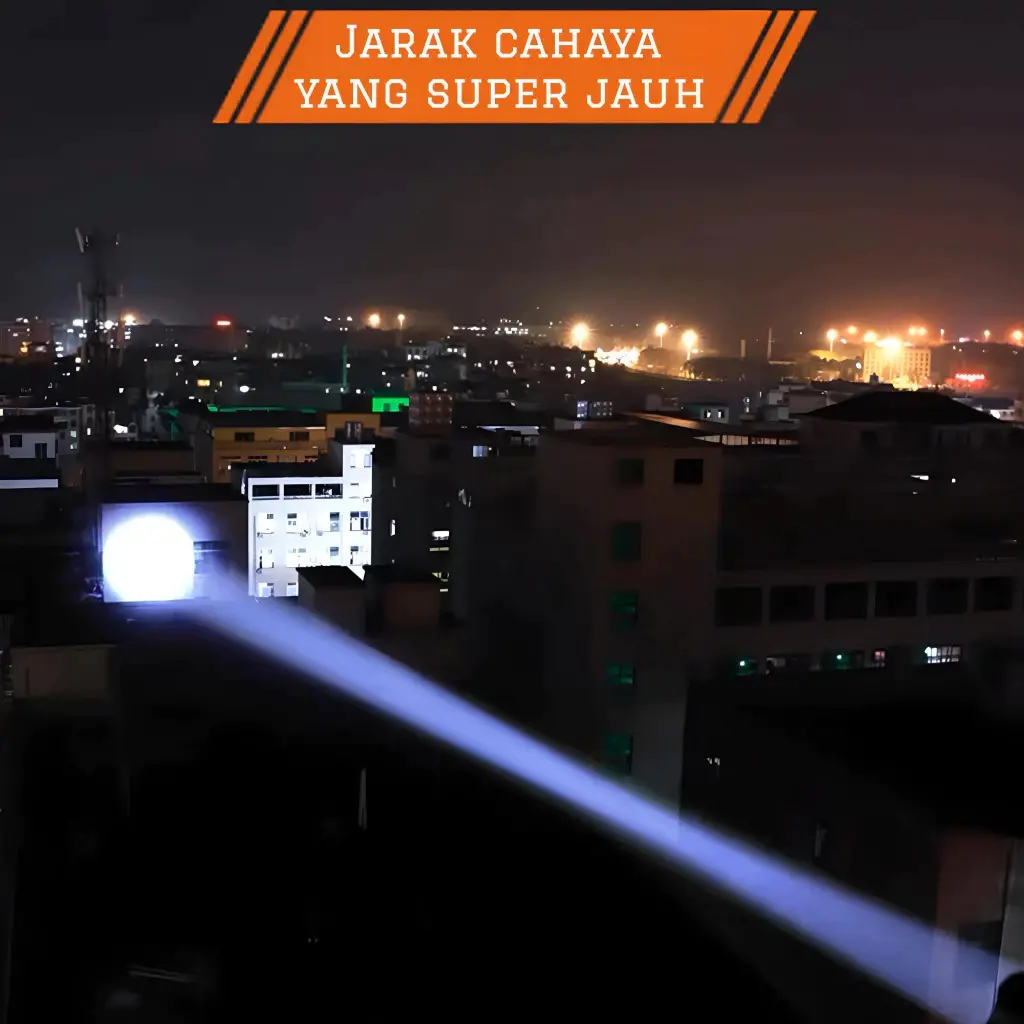 • Senter super terang 3000 lumen dengan 2 warna LED (putih, kuning). Kecerahan hingga 3000 lumen dan jarak pencahayaan maksimal 500 meter. Mode peredupan tanpa batas (Mode Stepless dimming) memungkinkan penyesuaian kecerahan sesuai lingkungan.
