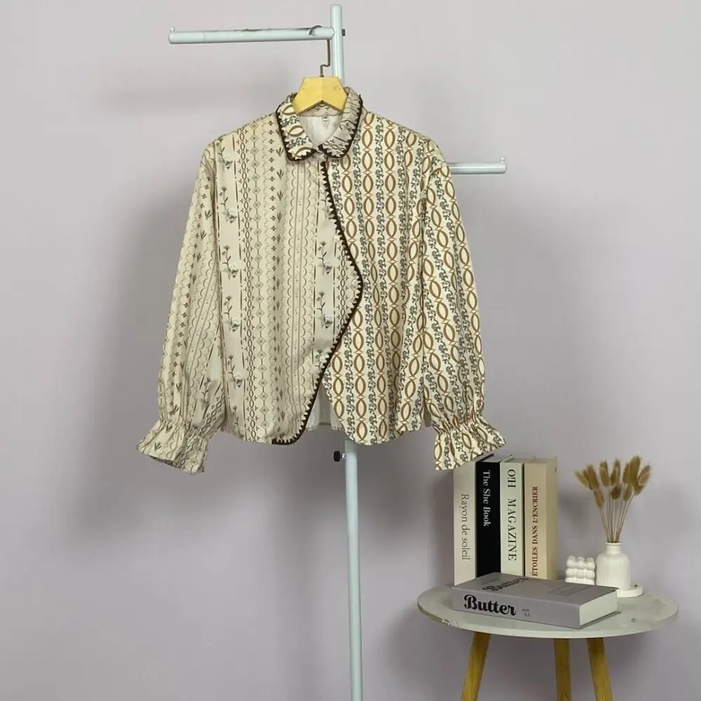 [ready stock]Asaya Atasan Kemeja Pakaian Wanita Motif Bergaris Mode Korea Terbaru