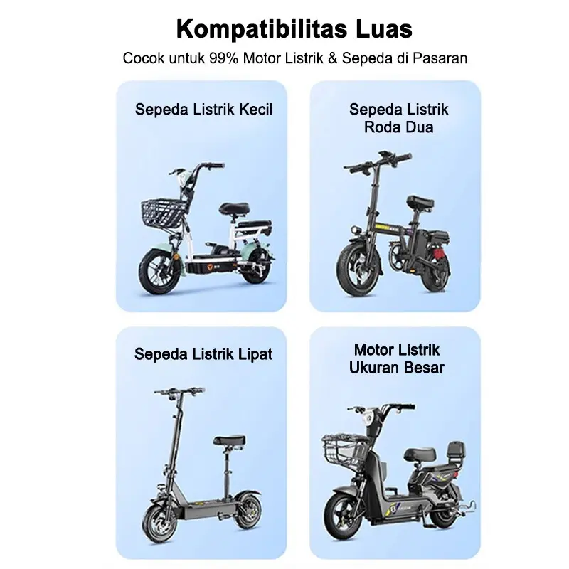 Kompatibilitas Luas: Cocok untuk 99% Motor Listrik & Sepeda di Pasaran