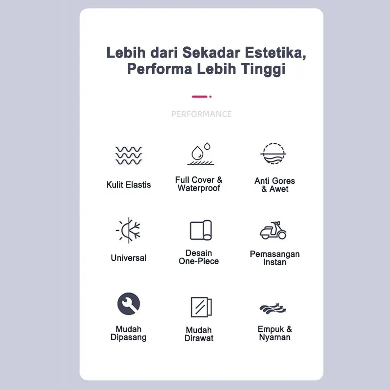 Waterproof: Terbuat dari bahan tahan air untuk perlindungan maksimal terhadap jok sepeda dari kelembapan.