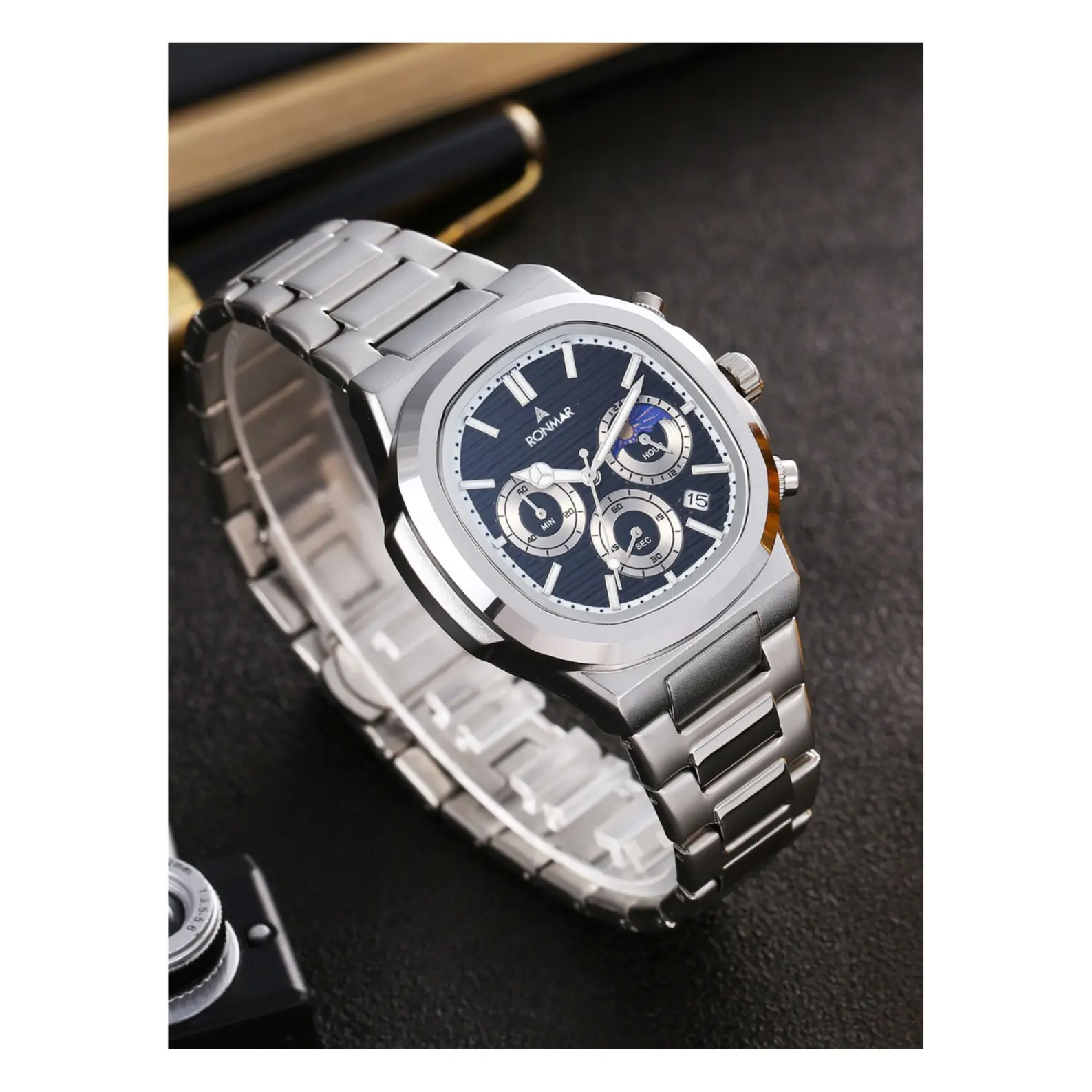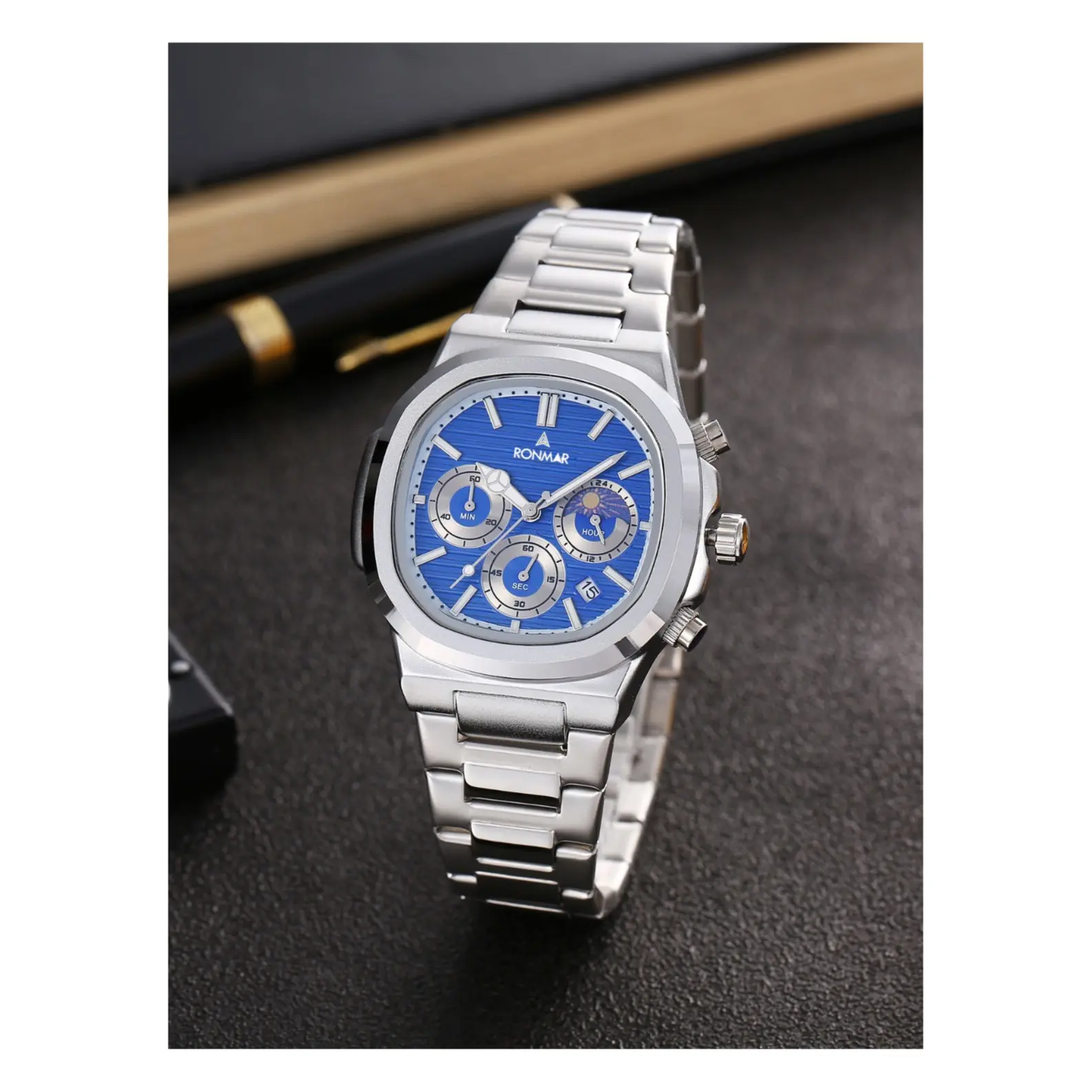 Jam tangan pria Rommar ini hadir dengan desain yang elegan dan modern, cocok untuk menemani aktivitas harian maupun acara formal. Dibalut dengan casing dan tali stainless steel yang kokoh, jam ini tidak hanya tahan lama tapi juga memberikan kesan mewah di pergelangan tangan Anda.
