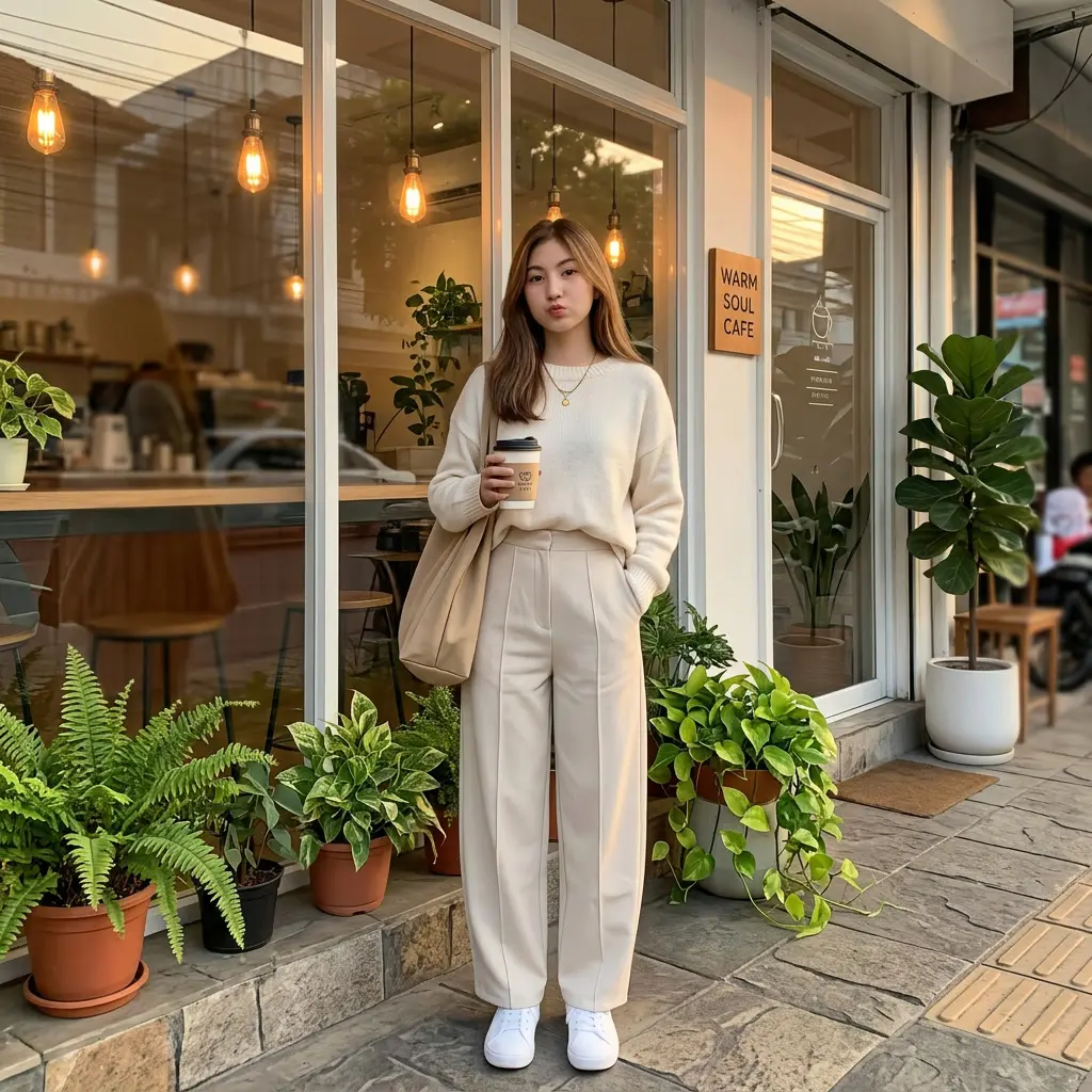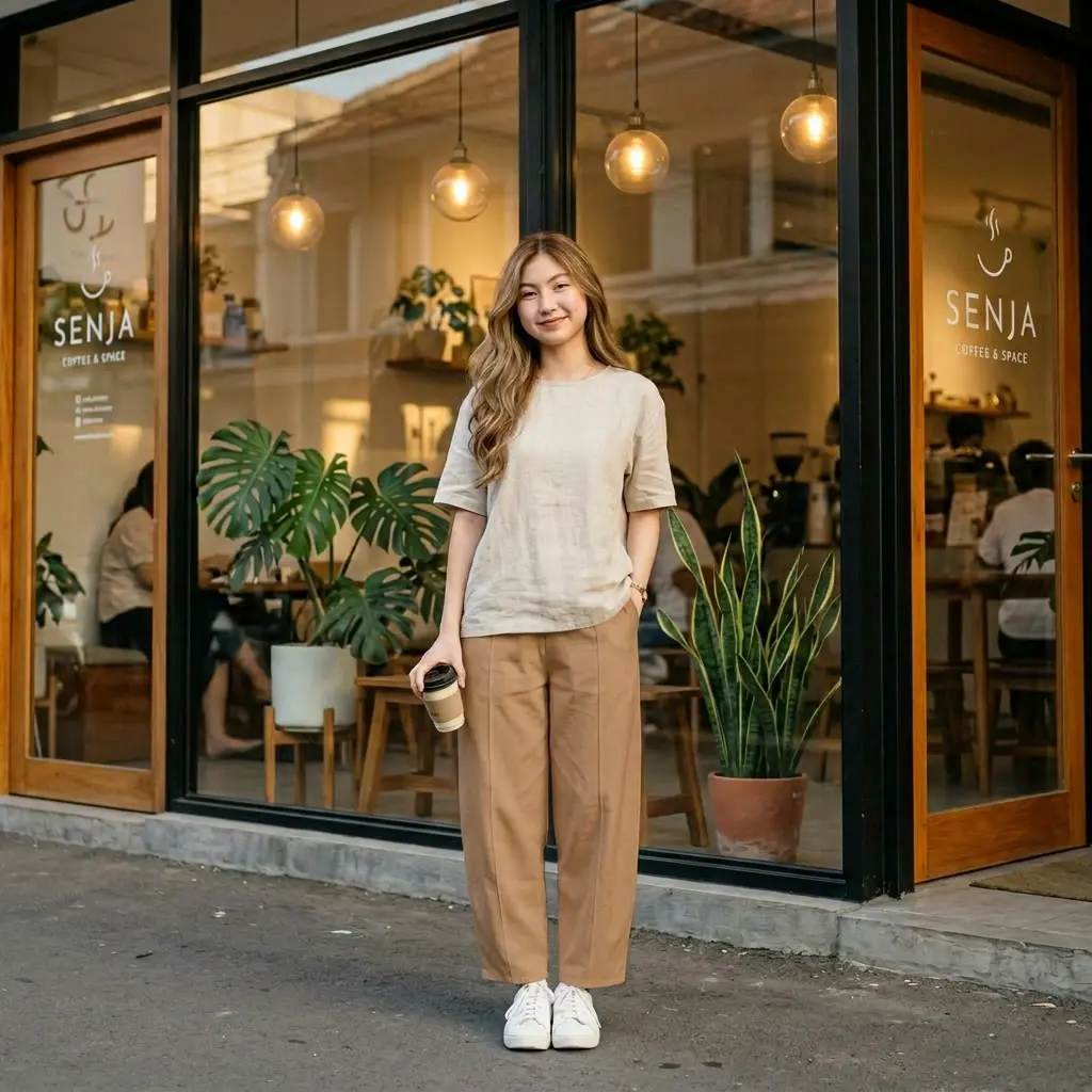 Desain barrel: potongan wide pants dengan silhouette barrel membuat desain terlihat elegant dan nyaman.